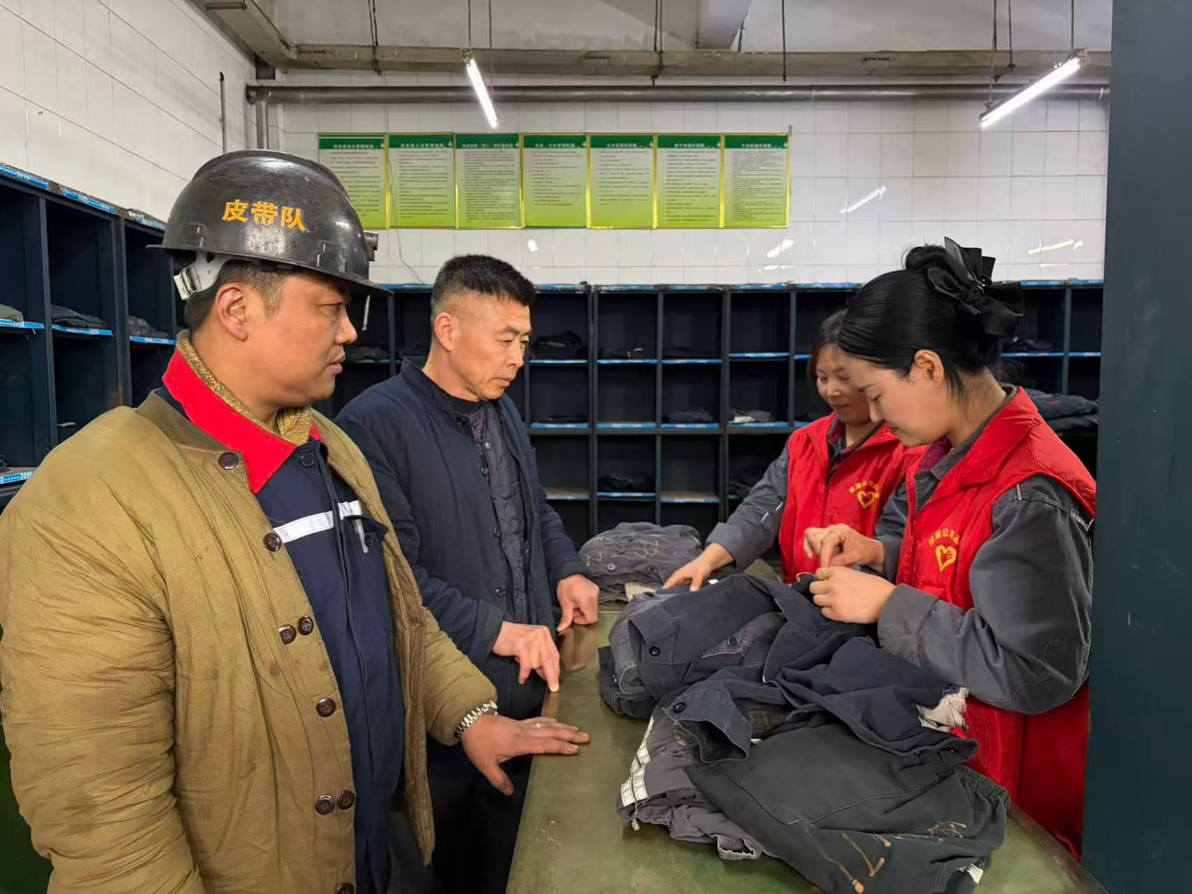 井下作业环境复杂,职工日常穿戴的工装易出现磨损、开线等情况,不仅影响穿着体验,更关乎作业安全。为切实解决职工“急难愁盼”,物业部提前摸排需求,组织后勤服务人员成立“暖心补缝小队”,在洗衣房设置专属服务台。