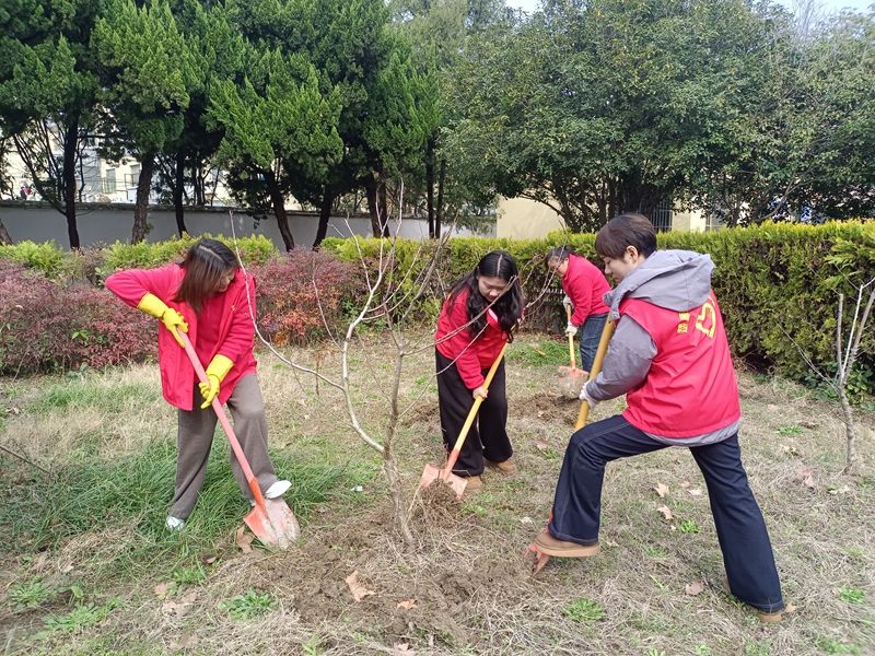 活动现场暖意融融,大家分工协作、配合默契,充分发扬团结奋进的精神。有的挥锹松土、扶正树苗,有的培土固根、浇水灌溉,还有的细心清理周边杂草垃圾,每一道工序都认真细致、有条不紊。大家俯身劳作的身影与树苗相映成景。活动过程中,有经验的老师还现场讲解了树苗养护知识、日常爱苗护苗技巧,让大家不仅种下绿色,更懂得守护绿色,把生态环保理念牢记于心、践行于行。