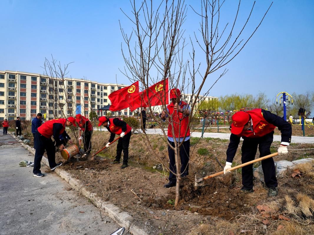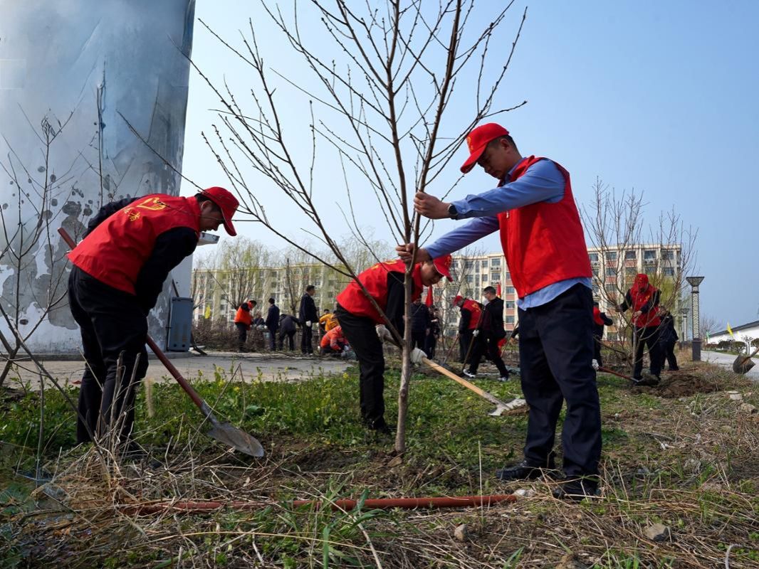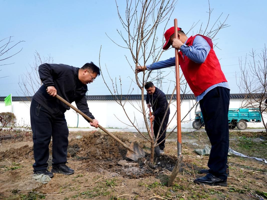 活动现场,党旗、团旗飘扬,青春涌动。志愿者们手持铁锹、水桶等工具,热情高涨,干劲十足。在简要了解植树区域和分工后,大家迅速投入到劳动中。挥锹铲土、扶苗培土、围堰浇水、压实整理……各个环节衔接有序,配合默契。青年们不怕脏、不怕累,额头沁出汗珠,身上沾满泥土,但笑容始终洋溢在脸上,现场一派热火朝天的劳动景象。新栽下的树苗整齐排列,迎风挺立,在明媚的春光中展现出勃勃生机,为初春的站场增添了丝丝绿意,也播种下新的希望。