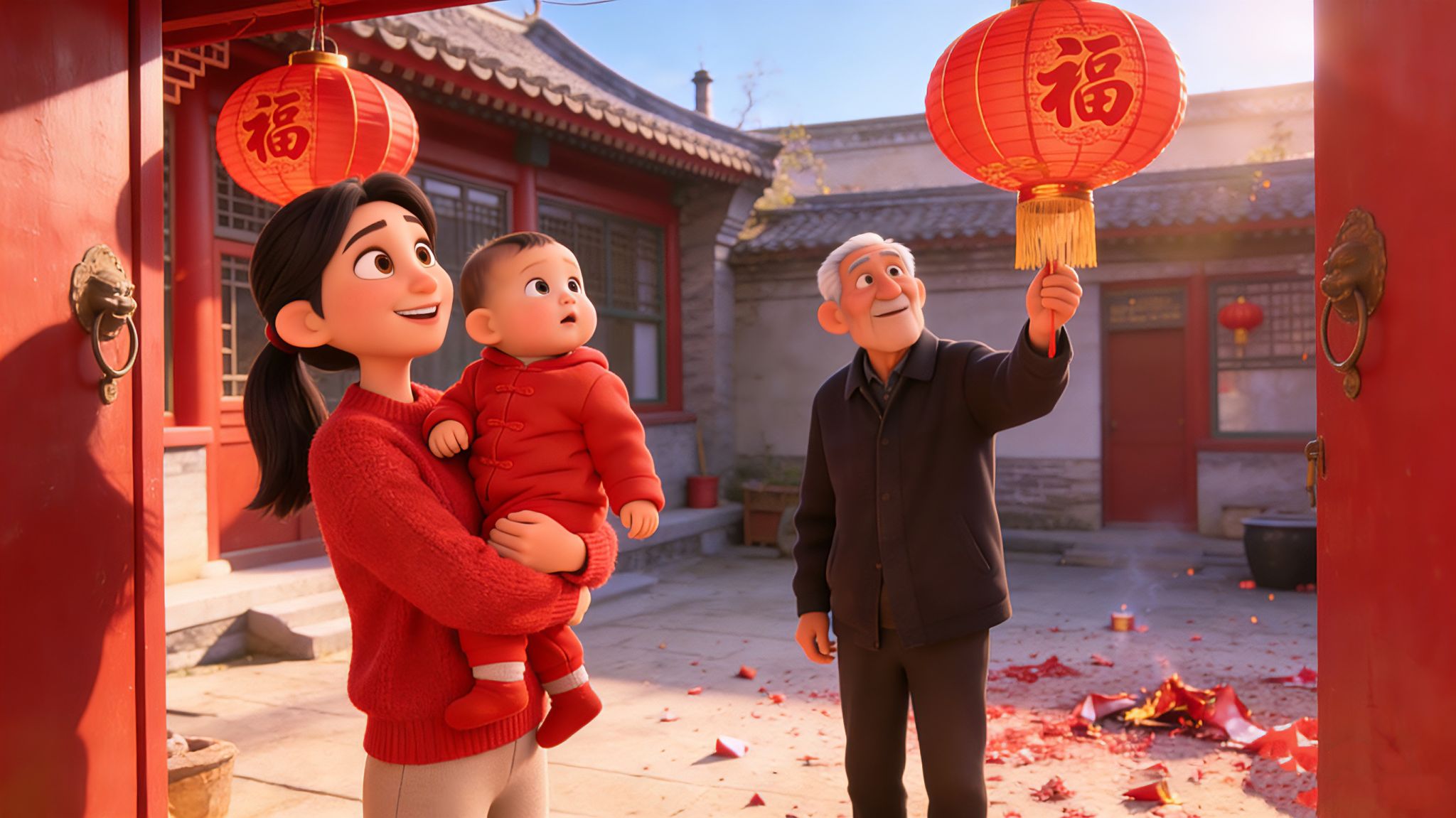 母亲提前把宝宝的新年小衣服洗晒干净,叠得整整齐齐,念叨着新年要穿红戴新,眉眼间满是温柔;父亲收拾年货时,总会多挑几样软糯的辅食,想着宝宝过年也能尝点新鲜。我守在一旁,帮着擦拭灯笼、整理年货清单,偶尔抱起宝宝轻轻哄着,看着父母忙前忙后却笑意盈盈的模样,忽然间就释然了:年味其实从未真正消散,它只是换了一种方式,在新一代的身上重新发芽、生长。小时候,我是被守护的那一个;如今,我成了守护孩子的人,年的意义,也从单纯的热闹与期盼,变成了陪伴、传承与责任。
