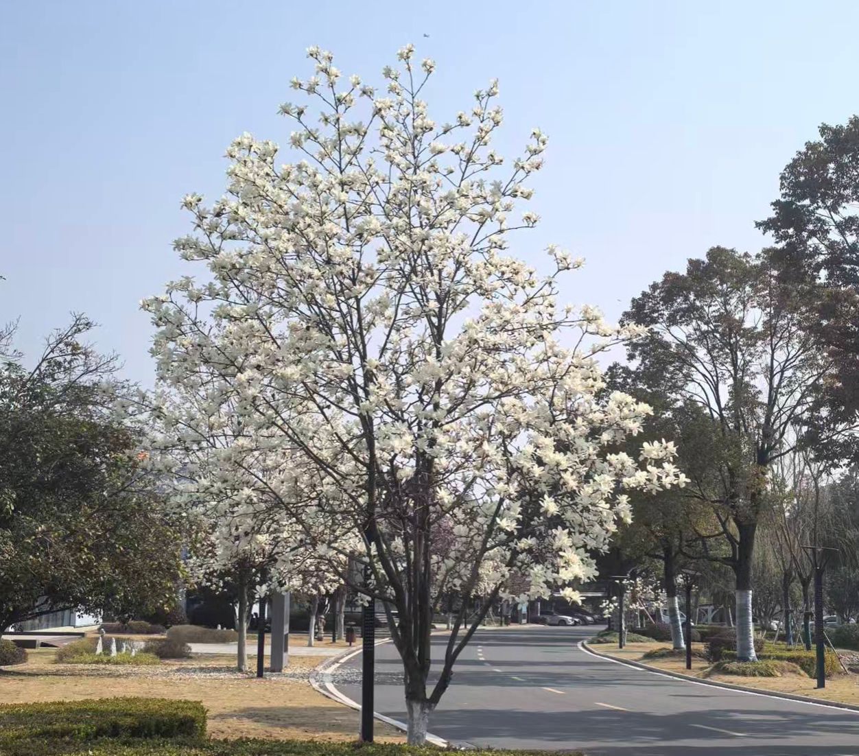 园区的玉兰花又开了。