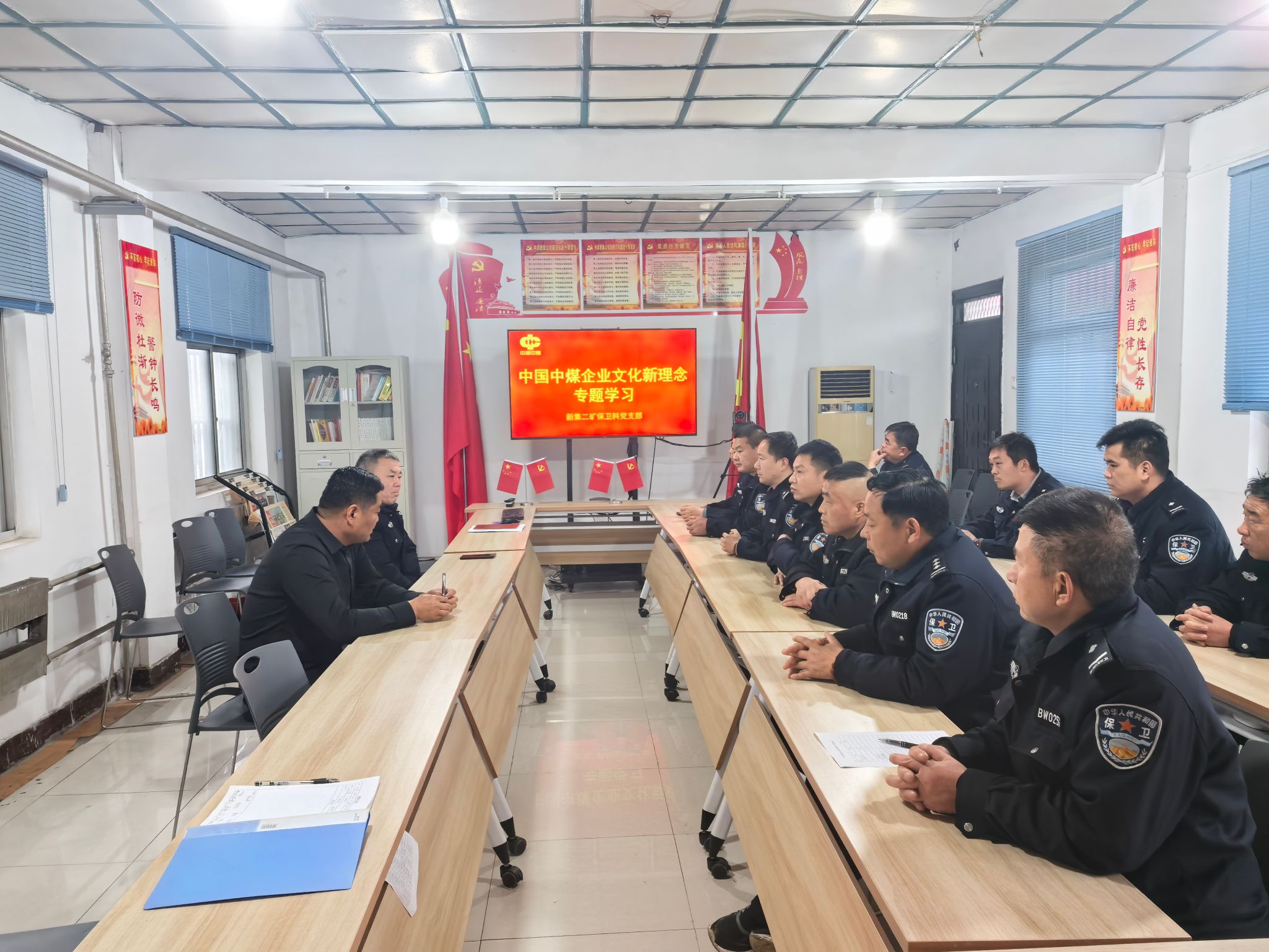 近日,新集二矿保卫科党支部以“线上+线下”相结合的方式,组织全体党员、骨干学习中国中煤企业文化新理念,进一步统一思想、凝聚力量。