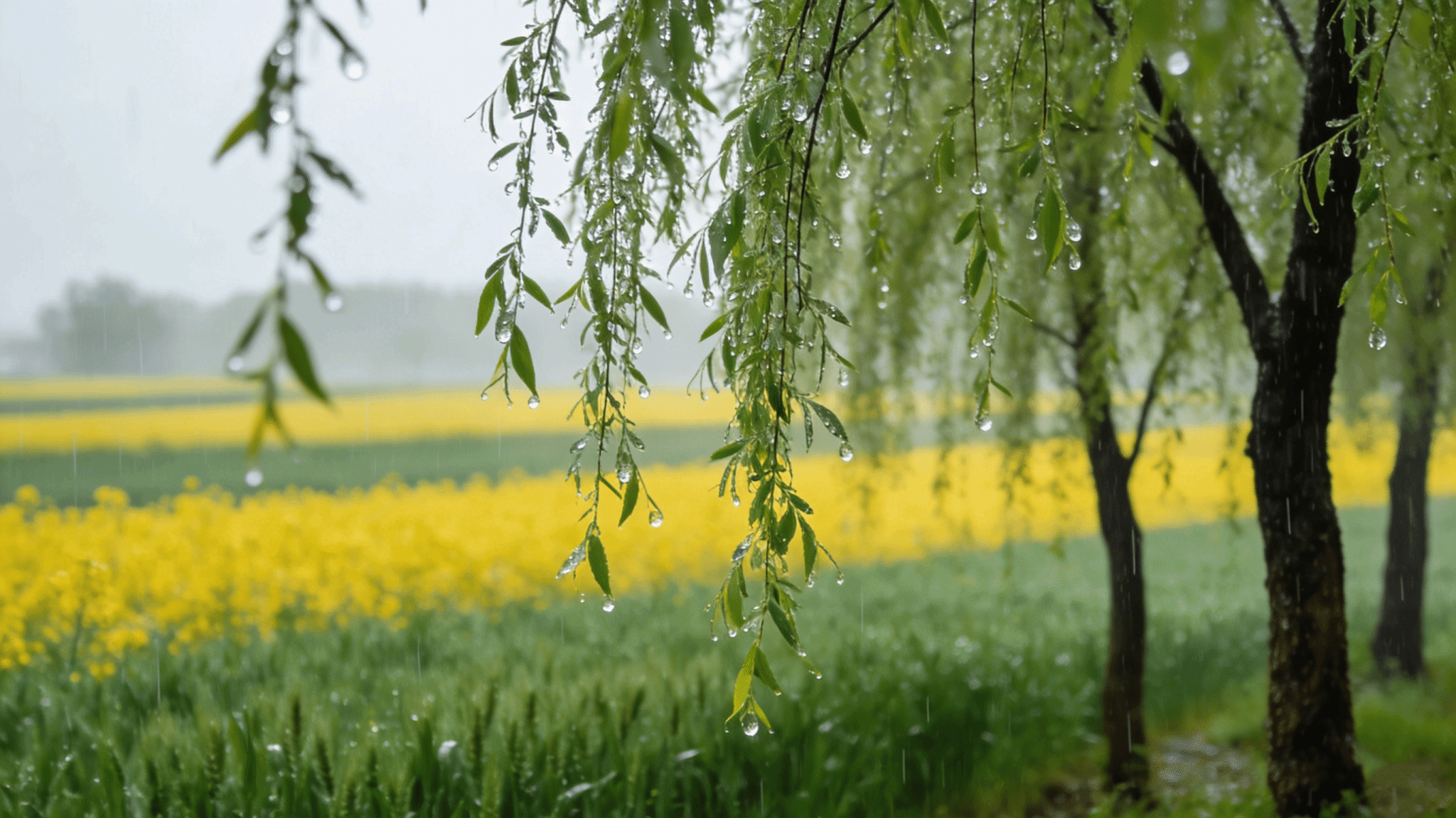 驱车行往乡间,沿途尽是春日盛景。道路两旁,大片油菜花肆意盛放,金黄一片,热烈而灿烂,如同铺展在大地之上的锦绣。细雨落在花瓣上,凝成晶莹的水珠,风一吹便轻轻滚落,融入脚下湿润的泥土。油菜花田旁,是一望无际的麦田,新抽的麦叶青翠欲滴,在雨雾中舒展着腰身,生机勃勃。那抹浓绿与金黄相互映衬,打破了清明固有的清冷肃穆,多了几分生命的蓬勃与希望。田埂边,杨柳抽出细嫩的枝条,鹅黄的新芽缀满枝头,柔枝随风轻摆,似在低吟浅唱,又似在默默垂首,平添了几分婉约的愁绪。脚下的泥土被雨水浸润,松软温润,一股清新的泥土芬芳扑面而来,那是大地最本真的气息,藏着万物生长的力量,也藏着落叶归根的深情。