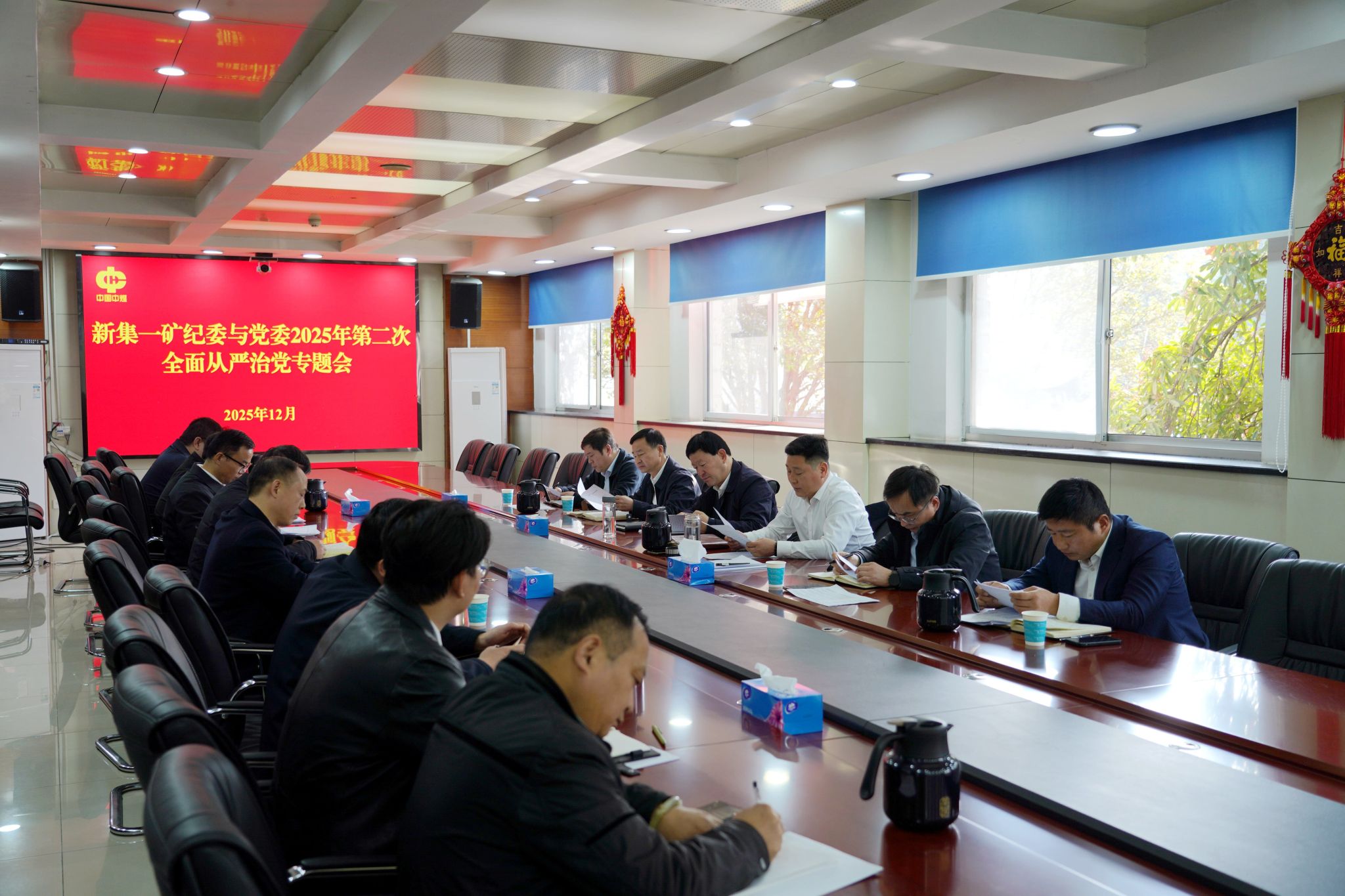 12月8日上午,新集一矿纪委与党委2025年第二次全面从严治党专题会在行管楼一楼会议室召开。总结矿党委落实全面从严治党主体责任情况以及纪委落实监督责任情况,安排部署下一步工作。党委书记、副矿长李贯胜主持会议,党委副书记、矿长吴征亮,党委副书记、纪委书记戚良早,党委委员、总工程师岳喜占等领导班子成员,党建工作科、办公室、人力资源科等相关科室负责人参加。