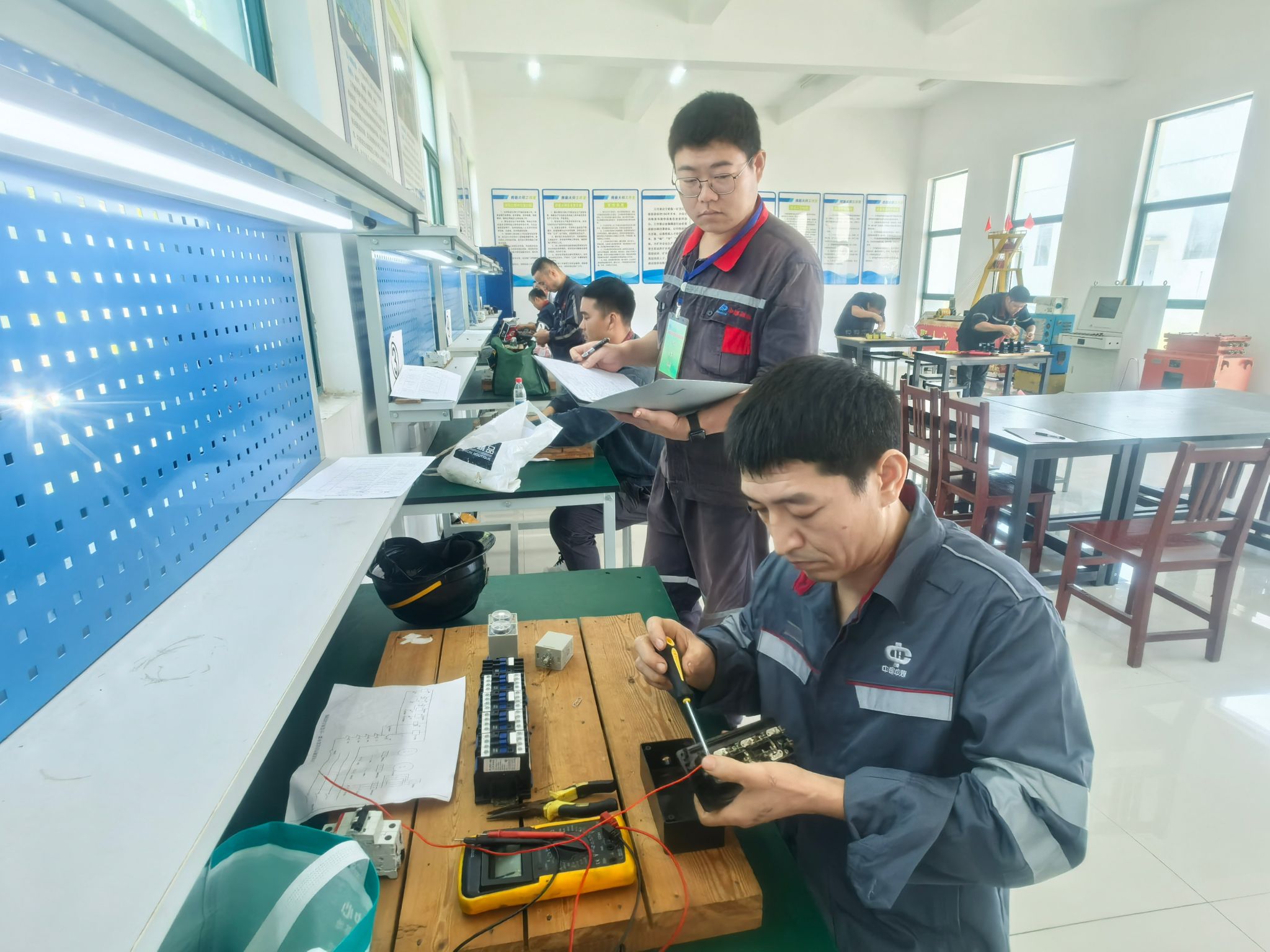 9月16日,公司人力资源保障中心在新集一矿开展初中高级矿井维修电工技能实操考核,对来自阜阳矿业、刘庄矿业、新集一矿、新集二矿等单位的15名技能人才进行了评价。作为本次职业技能实操考核的承办部门,新集一矿人力资源科精心组织,认真细致做好实操考核场地、后勤保障等工作,并请技术大拿按照实操考核要求,对设备进行了调试,确保技能等级认定工作顺利进行。