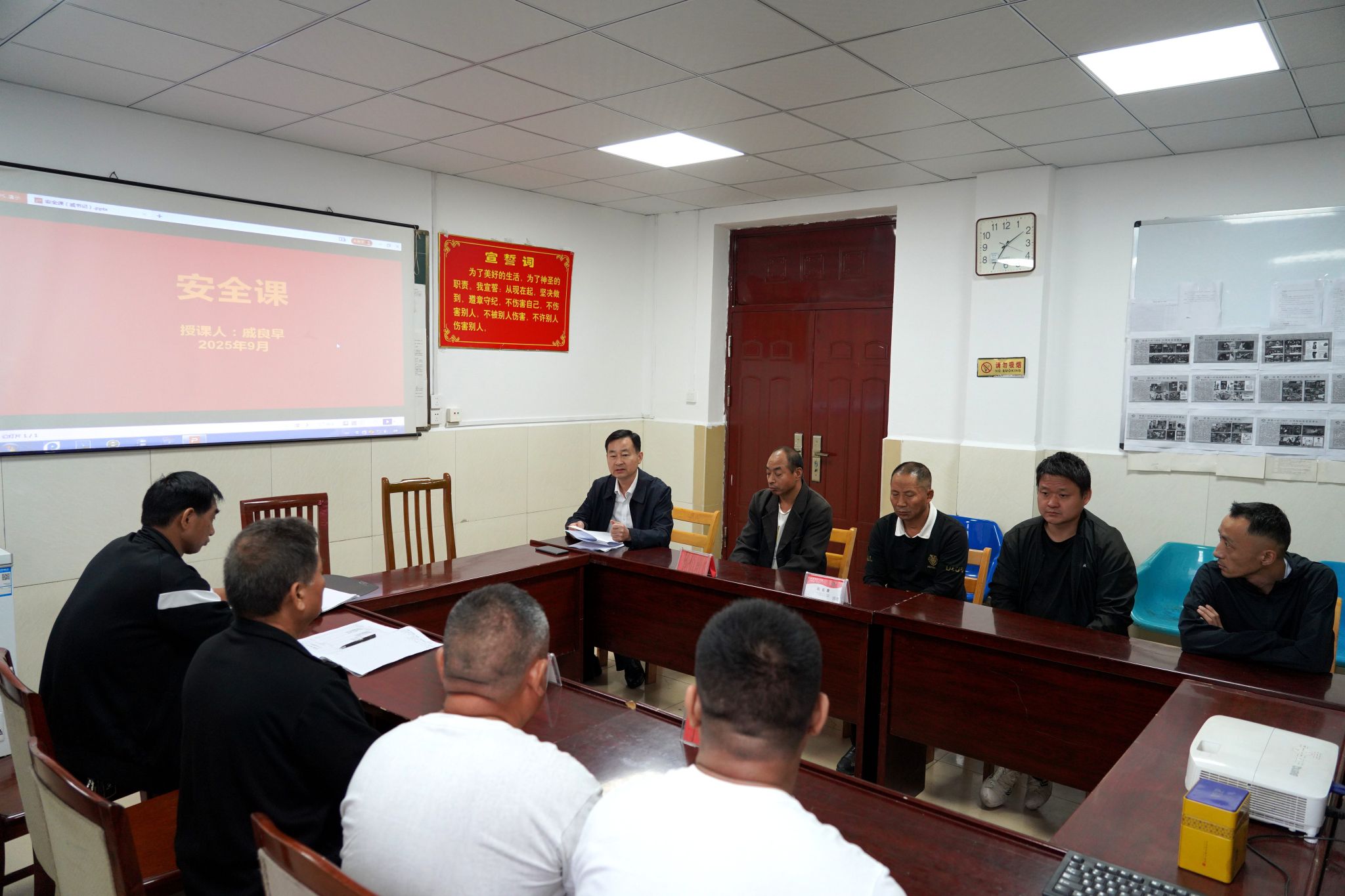 课上,戚良早首先带领大家学习了《关于防范遏制矿山领域重特大生产安全事故的硬措施》《集团公司加强安全精细化管理十项措施》《中国中煤安全管理“六个三”要求》《中国中煤“三违”治理八项举措》,重点学习了集团公司党委副书记、总经理高士岗在9月7日安全生产紧急视频会上的讲话精神。随后,结合当前安全生产形势,深刻剖析了近期典型事故案例发生的原因及经过,总结分析了今年以来安全生产情况,深入阐述了做好安全工作的重要意义,强调了安全是做好各项工作的保障,要求各区队干部职工按照集团公司、公司和矿安全生产“雷霆行动”工作部署,进一步提高安全意识,逐级落实安全生产责任,坚决筑牢安全防线。