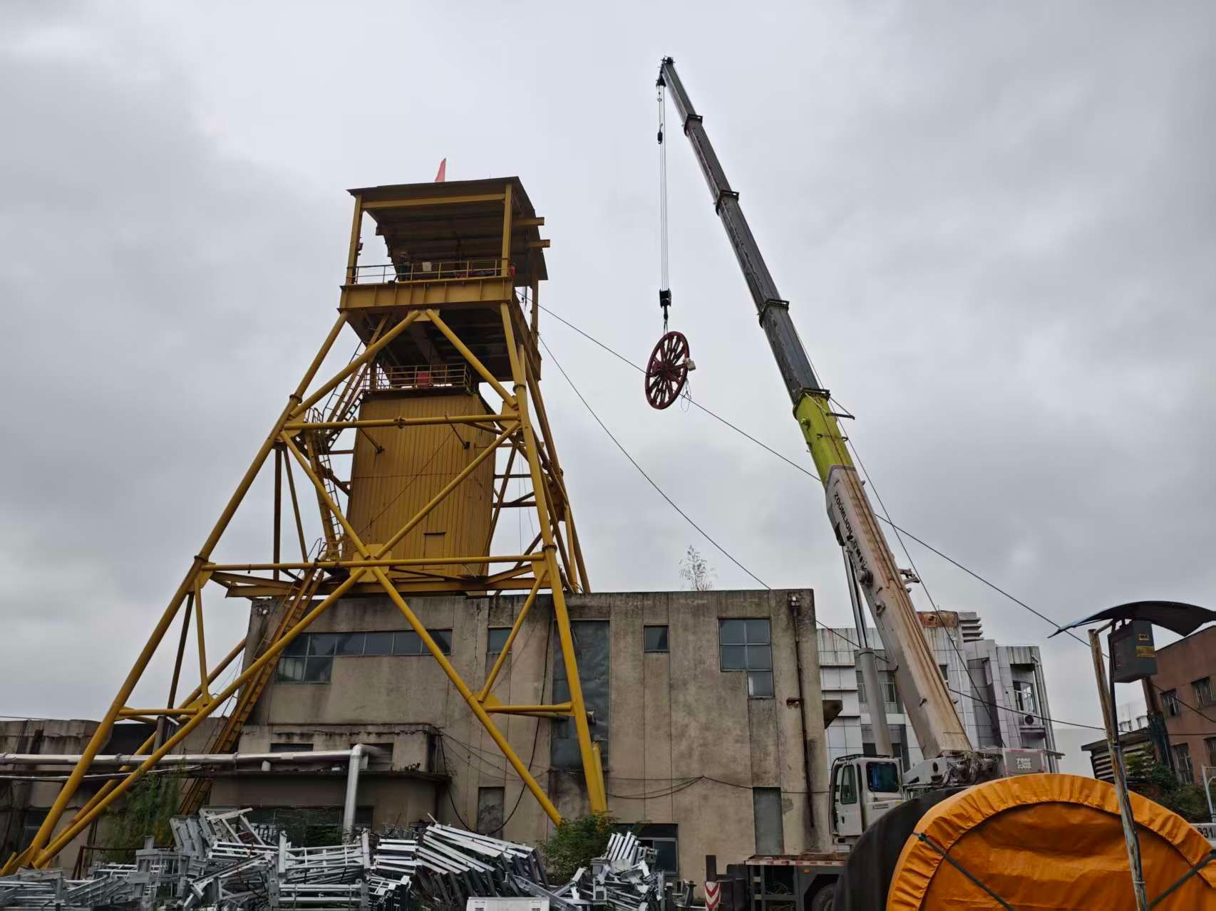 由于天轮体积庞大,且安装位置处于高空,作业空间狭小、起吊重量大,给起吊工作带来了极大挑战。为保障施工安全,施工单位对吊车位置、起吊重量、高度、力臂长度进行了精确计算,租用了超大吨位的起重吊车,确保将天轮一次安全起吊到位。在全体人员的共同努力下,终于在规定时间内完成天轮更换工作。经现场调试,新天轮运行平稳、可靠,温升、振动、声音等各项指标均达到要求,为矿井安全提升夯实了基础。