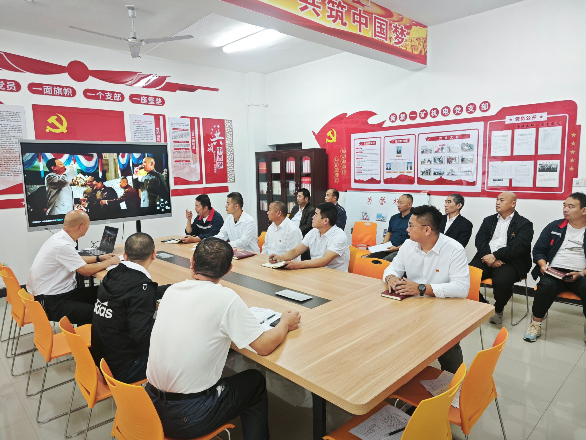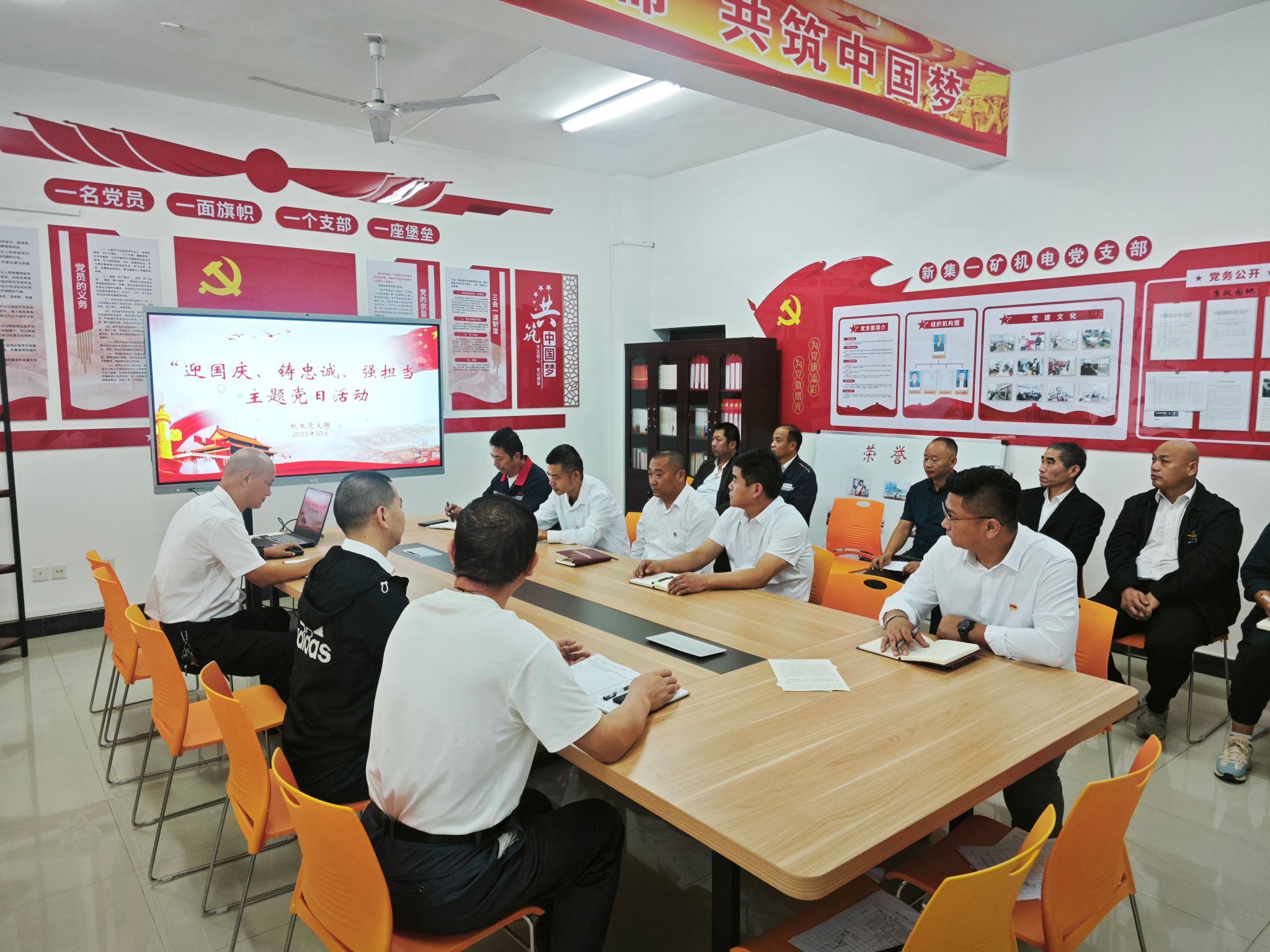 活动伊始,全体党员集体观看红色电影《建国大业》。影片聚焦1945年抗日战争胜利至1949年新中国成立的关键历史阶段,生动再现了中国共产党带领全国人民冲破重重阻碍、团结各民主党派召开第一届中国人民政治协商会议、最终宣告中华人民共和国诞生的光辉历程。观影过程中,党员们全程专注、投入,当看到毛主席在天安门城楼上庄严宣告“中华人民共和国中央人民政府今天成立了”的经典画面时,现场自发响起热烈掌声。老一辈革命家为民族独立、人民幸福挺身而出的担当精神,激发了在场每一位党员的爱国热情。观影结束后,大家围绕“如何立足机电岗位铸忠诚、强担当”展开专题讨论。