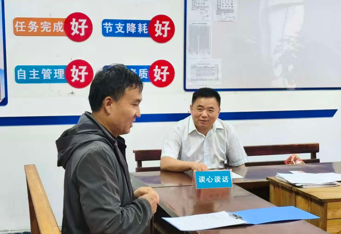 这是10月11日,新集一矿掘进一党支部书记对“三违”职工进行谈心谈话安全帮扶时的一幕。为教育职工杜绝违章行为,在工作中严格遵守安全生产各项规章制度,确保安全,新集一矿掘进一党支部积极组织“三违”人员开展谈心谈话活动。在听了“三违”人员对违章事情的讲述后,党支部书记从违章给单位、家庭、个人造成的后果等方面来引导杜绝侥幸心理,做到“上标准岗、干标准活”。