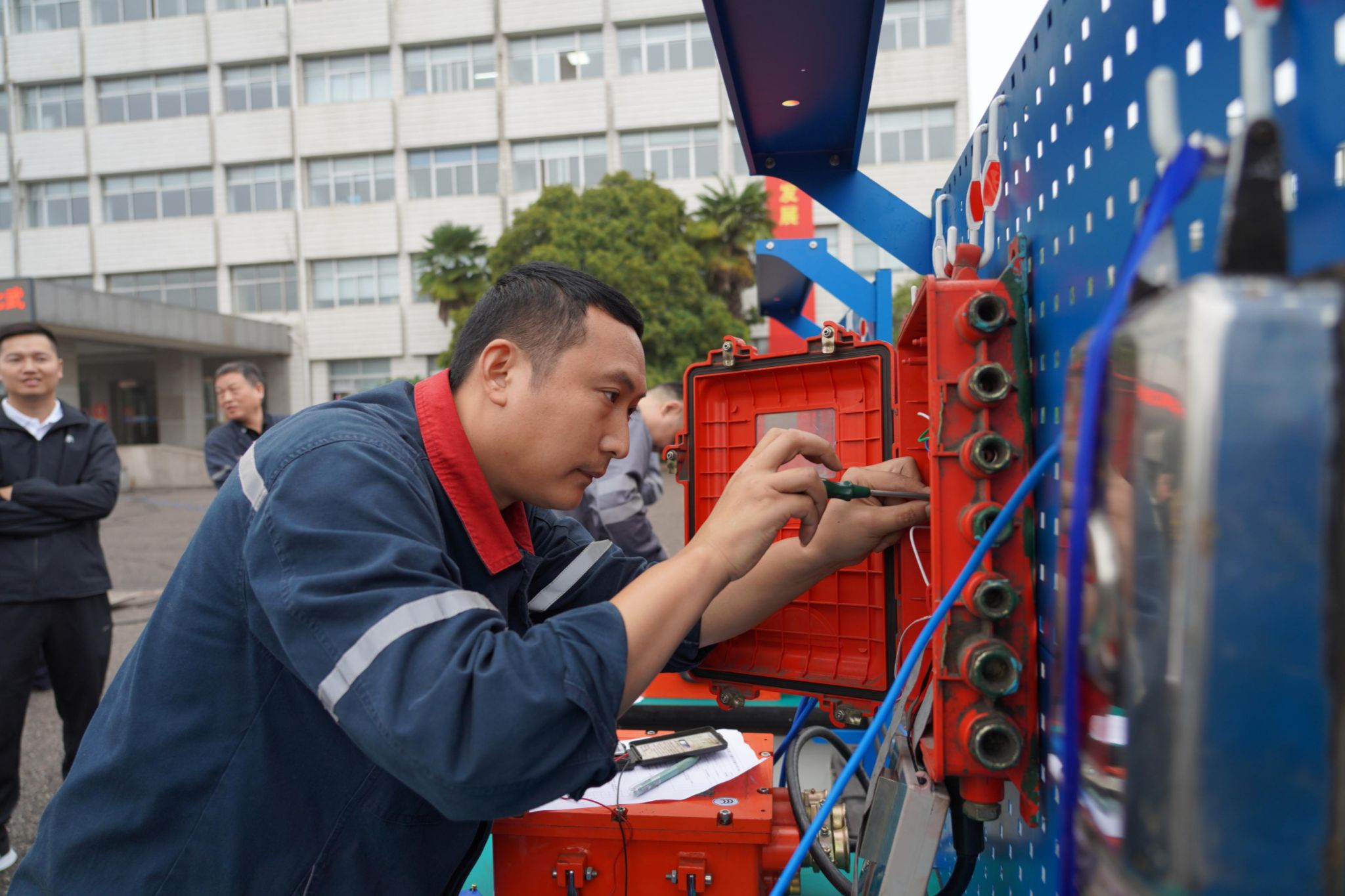 来自全矿各单位的40名优秀选手齐聚一堂、同台竞技,参加维修机工、维修电工、电焊工、瓦斯检查工、安全仪器监测工、矿山测量工、消防技能等7个项目的角逐,检验自己的动手能力、应变能力和安全规范执行水平。比赛现场紧张有序,选手们规范操作、沉着应对,充分展现出扎实的技术功底和良好的职业素养。