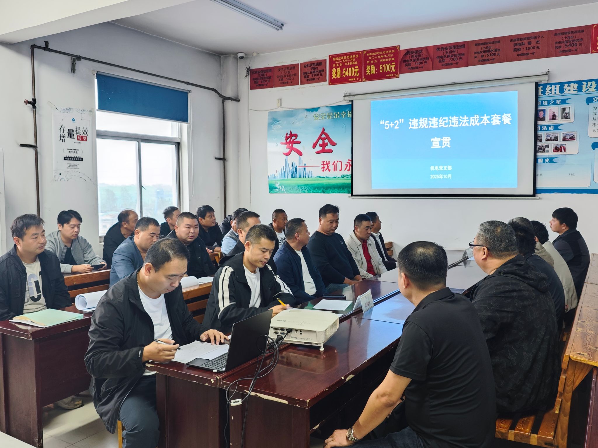 10月20日,新集一矿机电党支部利用所辖单位安全会时间段组织开展“5+2”违规违纪违法成本“套餐”再宣贯活动。