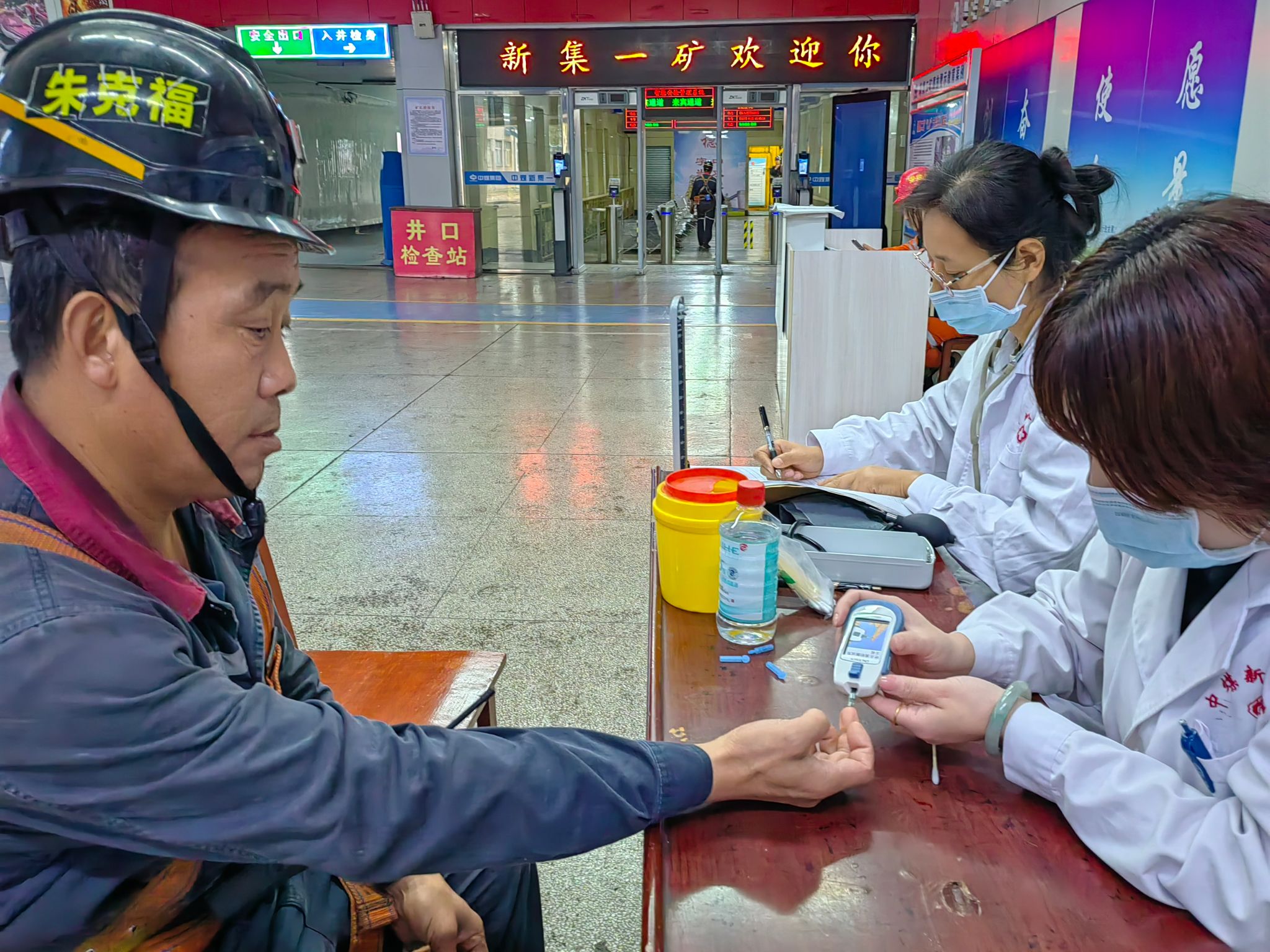 为从源头上杜绝安全隐患,新集一矿保健站主动作为,常态化深入井口开展血压、血糖测量,为一线职工筑起健康安全防线。
