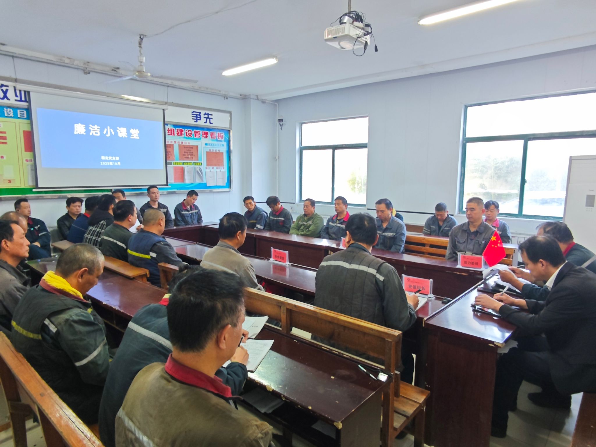 10月27日,新集一矿固定党支部深入所辖区队开展“廉洁小课堂”廉洁教育活动。