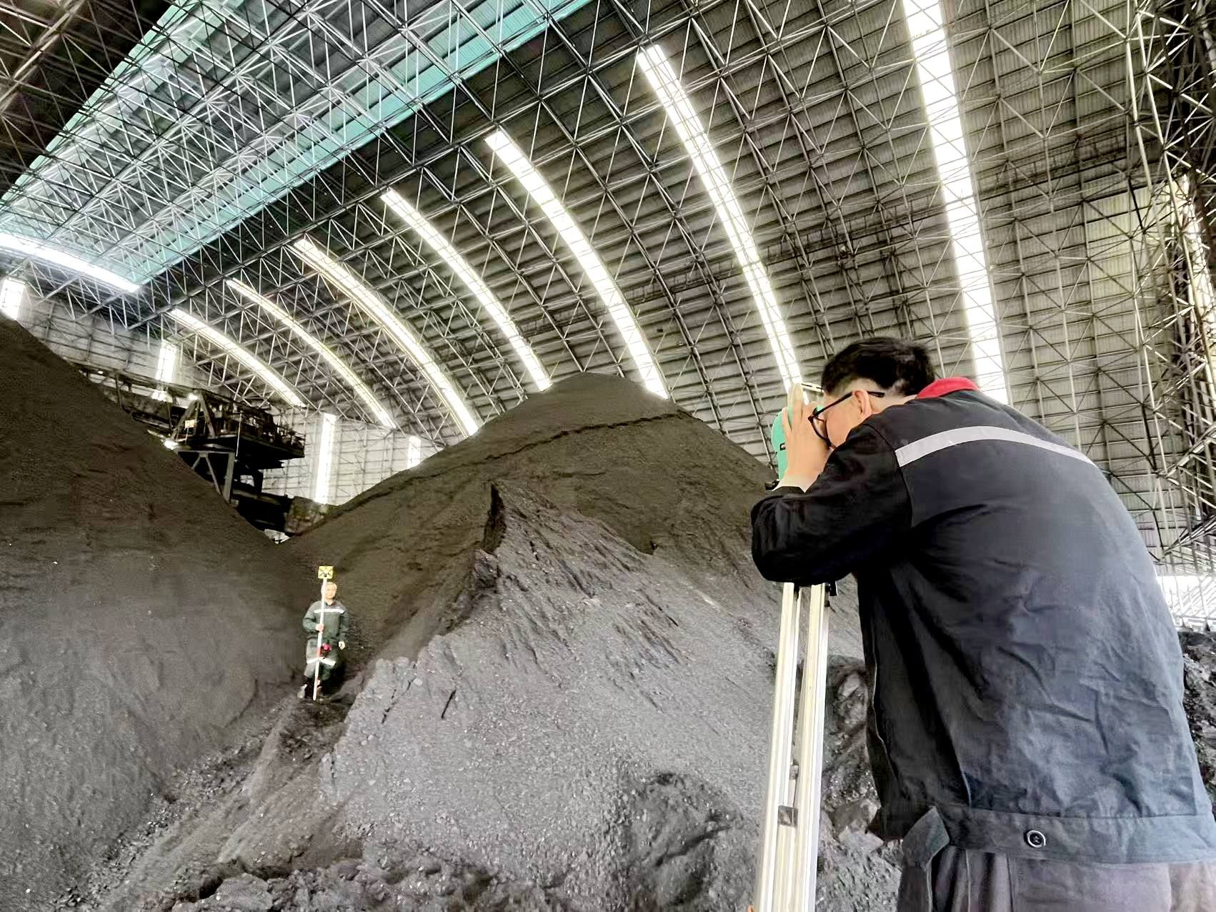 10月28日,新集一矿地测防治水科组织测量人员使用全站仪对封闭式储煤场内的每一个煤堆进行精确测量、计算,对现有的储煤量进行摸底,为矿经营决策提供有力的数据支撑。