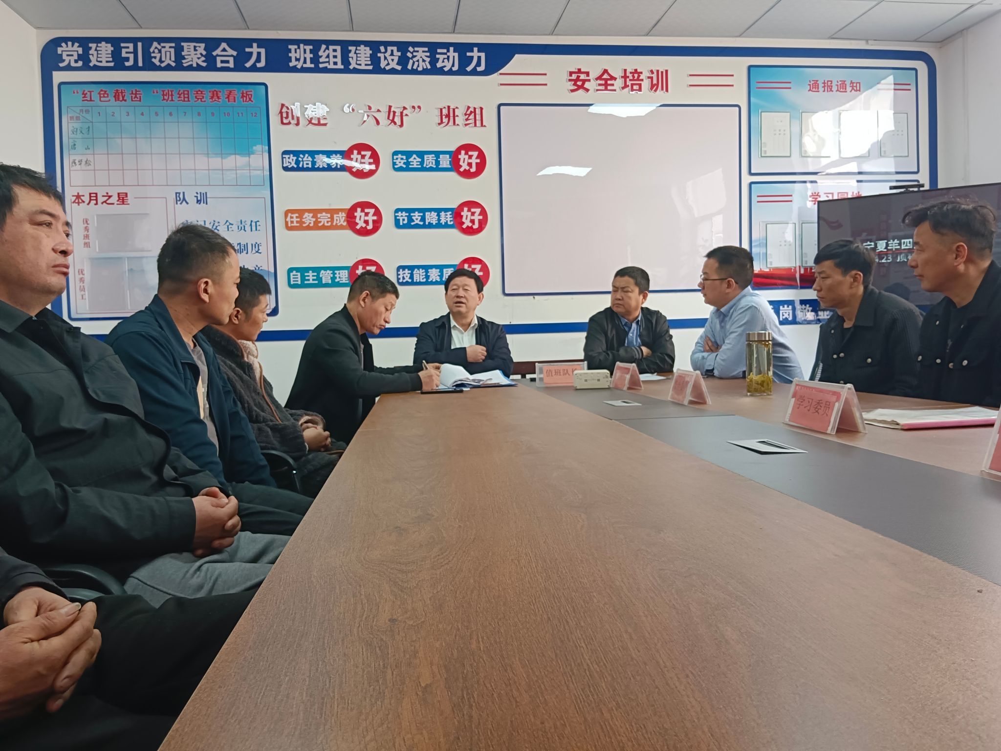 在综掘二队会议室,结合该队施工的230803底板瓦斯抽采巷重点工程实际,吴征亮要求全体干群提高认识,把握大局。深刻理解掘进工作的重要性。掘进进尺的进度、工程质量的优劣、安全管理状况等直接关系到采煤工作面的正常接续,关系到矿井生产稳定和经济效益。要明确目标、细化责任、狠抓落实。认真贯彻公司三季度经济运行分析会精神,坚决完成全年各项目标任务。要认真落实习近平总书记关于安全生产的重要论述精神和集团公司安全管理“六个三”要求,做到“先安全后生产,不安全不生产”,切实筑牢安全防线。要着力提升工程质量。认真践行巷道标准“十二条线”管理举措,严格按设计、按标准、按规程施工,狠抓巷道成型和帮顶支护质量,不断打造“标准化巷道”、“精品工程”,为矿井多出煤出好煤创造良好条件。要大力深化降本增效,牢固树立过“紧日子”思想。从节约一颗螺丝钉、一块垫板、一度电做起,加强材料预算和领用、回收等管理,认真落实修旧利废制度,将成本管控落实到每一个环节、每一个岗位。要加强设备预防性检修。刚性执行设备预防性检修制度,不断提升设备完好率,使设备发挥最佳效能。要持续关心关爱职工工作和生活,常态化践行“我为群众办实事”主题实践活动,通过优化井下乘人车班次、设备升级等方式用心用情关爱职工,不断增强职工的获得感和幸福感,提升凝聚力和向心力,积极营造干事创业的良好氛围。