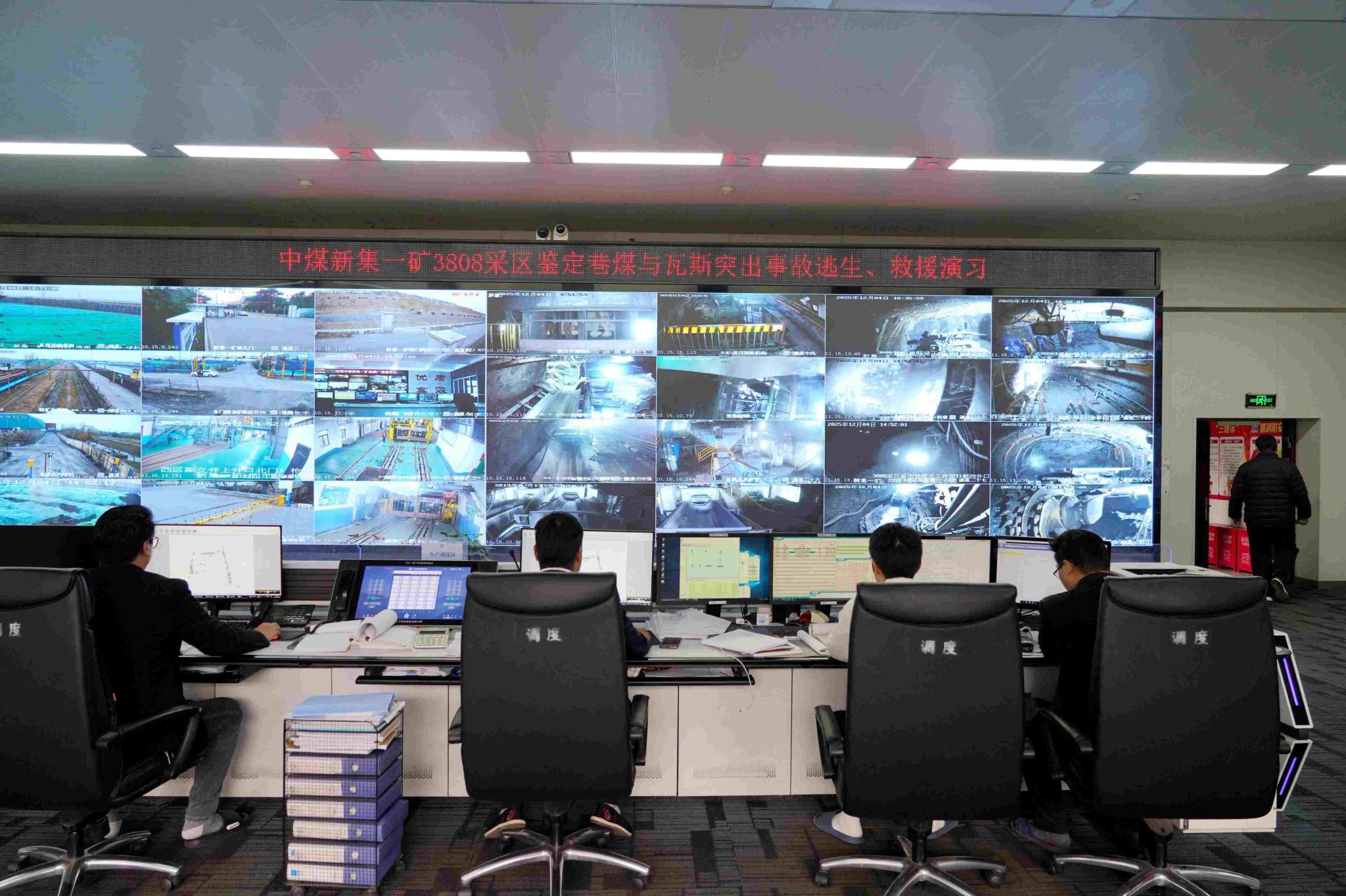 此次演习模拟3808采区鉴定巷掘进工作面迎头煤体裂开一条约宽0.2m,长约2.0m的缝隙,瓦斯忽大忽小展开。14时32分,监控中心站汇报3808采区鉴定巷T1甲烷传感器示值1.6%、T2甲烷传感器示值1.2%,进风侧甲烷传感器T4显示0.06%。矿调度接到事故汇报后立即下达停产撤人指令,并逐级汇报至应急救援领导小组,应急救援领导小组迅速赶赴生产指挥中心,分析“事故”原因及突出严重程度,启动事故应急救援预案,成立煤与瓦斯突出事故应急救援指挥部,指挥现场救援工作。现场抢险救灾、后勤保障、技术专家等各小组迅速到位并紧密配合,稳步有序展开工作……15时56分,在确定人员撤离、现场安全无误后,总指挥宣布演习顺利结束。