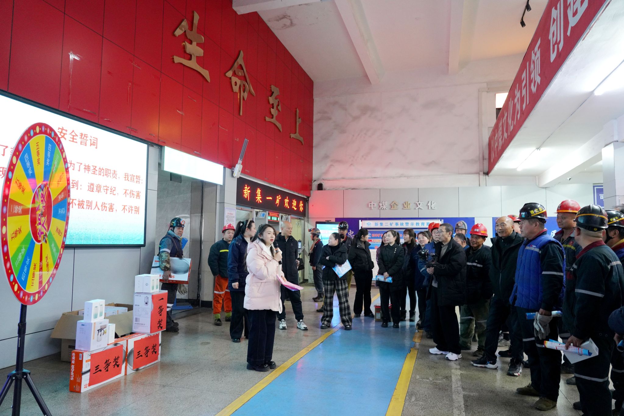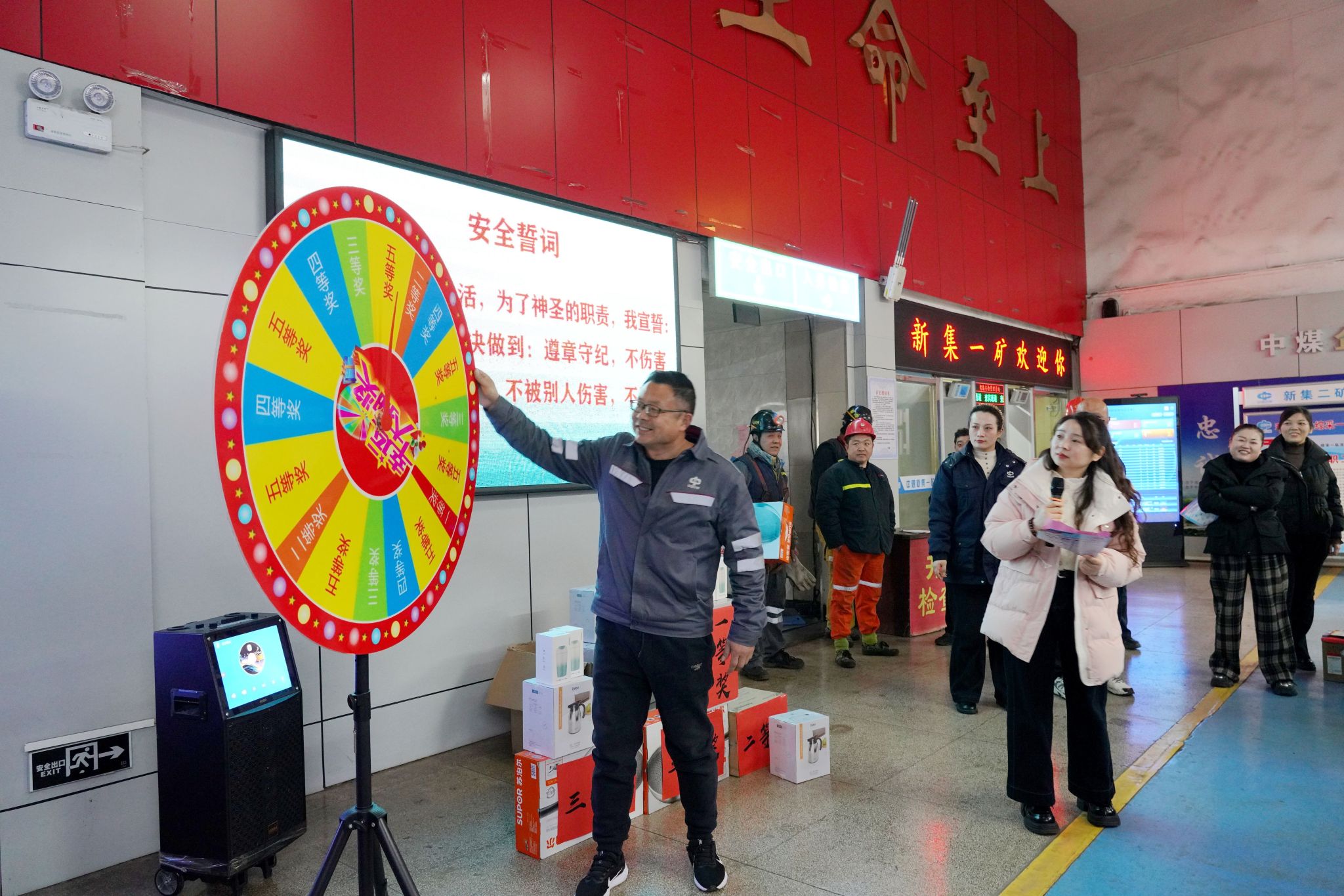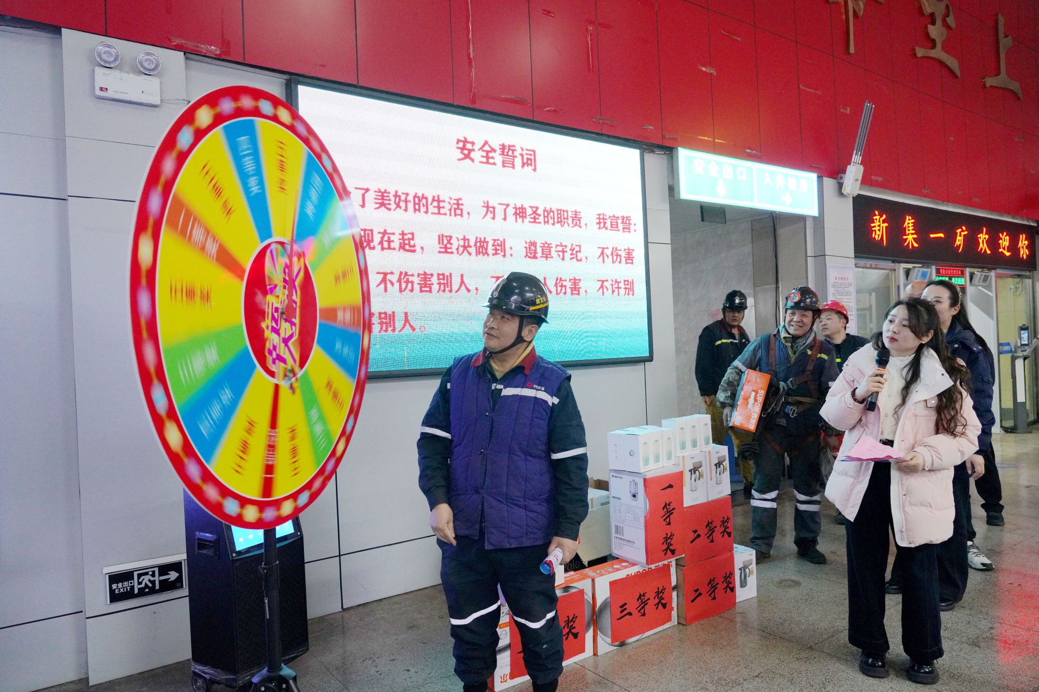“转起来!看看这次能抽到什么奖品!”12月30日上午10点,新集一矿中央区井口等候大厅里热闹非凡,往日职工下井宣誓的场所变成了安全知识课堂。该矿工会组织的喜迎元旦“安全知识问答+幸运大转盘”安全宣教活动正在火热进行。