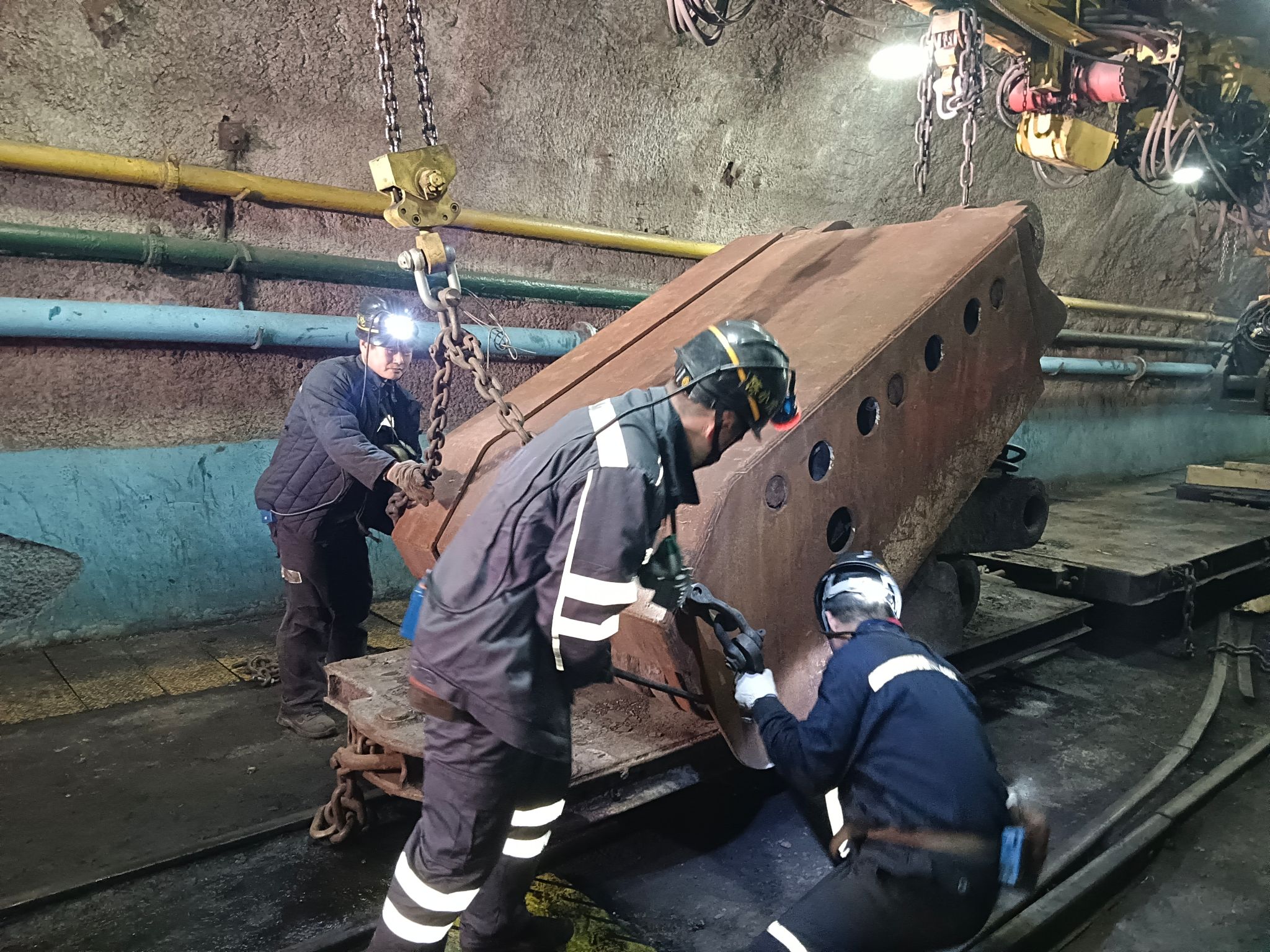打运过程中,机械化队始终坚持“安全与效率并重、质量与进度同行”的工作原则,全力推进各项工作。面对井下作业环境复杂、运输路线长、设备体量大等诸多难题,该队实行管理人员24小时跟班制度,党员干部带头冲锋在装车、转运、定位等关键环节,靠前指挥、现场协调,及时排查消除安全隐患。作业人员严格执行标准化操作流程,进行“装、运、卸”各环节无缝衔接,在保障安全的前提下持续提升作业效率。为确保每一台支架的安装质量,该队创新推行“班中短会”制度,每天利用作业间隙,组织职工复盘当天工序、交流操作经验、解决实际问题,对支架的定位精度、连接牢固度等关键指标进行严格检查,确保每一台支架都符合质量标准,确保了打运工作“零失误、零隐患、零事故”。