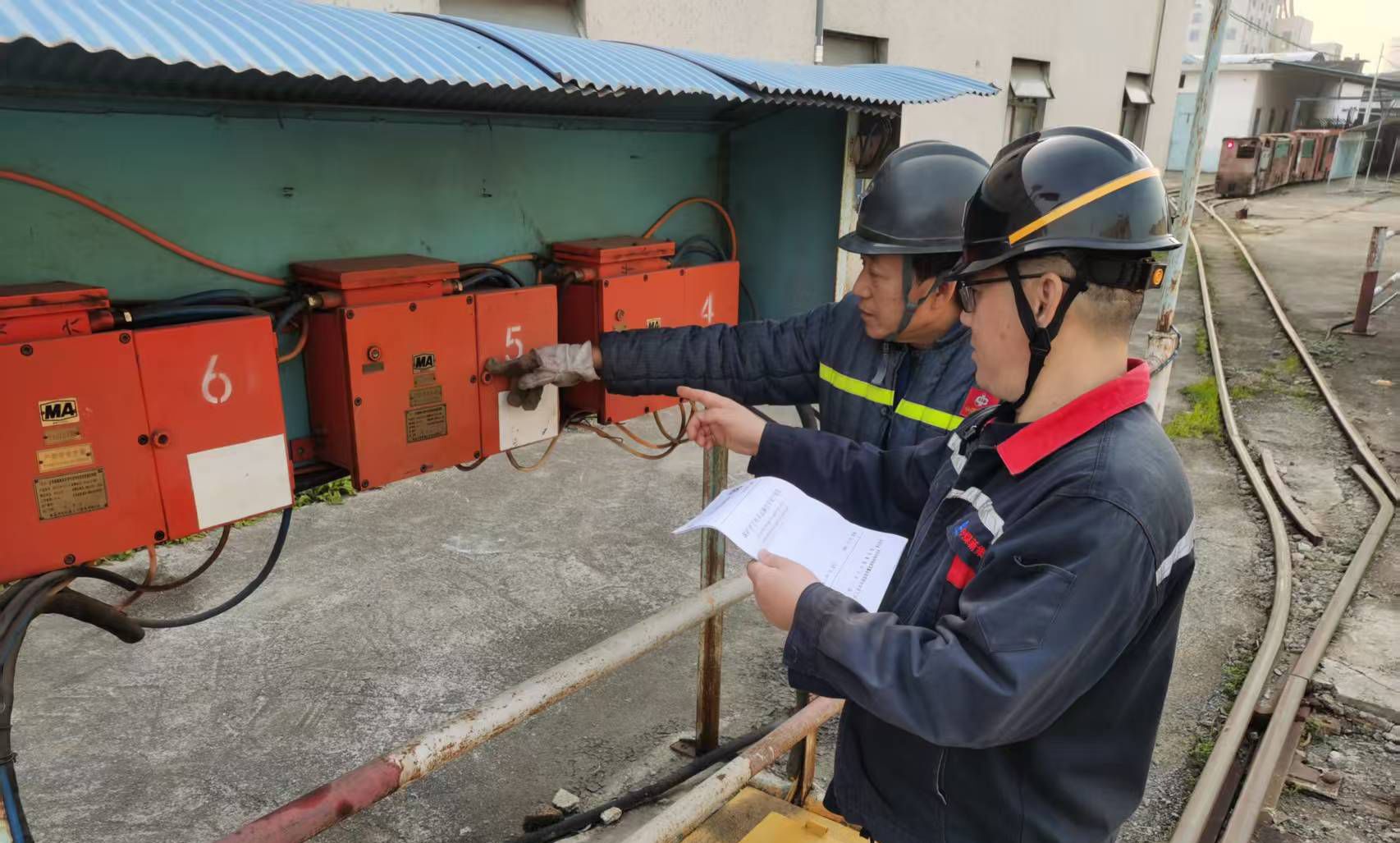 在井下轨道运输大巷,该区区长带头对照《煤矿井下辅助运输设计规范》等标准,用轨距尺、水平仪等工具逐段测量轨道参数,重点排查道岔接头松动、轨枕下沉等隐患;架空乘人装置检修现场,技术人员对照《煤矿用架空乘人装置安全检验规范》,对抱索器、制动系统、声光报警装置进行全流程检测,确保设备符合“每日巡检、每周维保、每月联检”要求;地面轨道系统检查中,党支部书记带队逐项核查电机车的闸、灯、警铃、连接装置等关键部件,严格落实“不安全不上线”原则;信号闭塞系统控制室,排查人员对照行业标准校验信号传输稳定性,模拟极端工况测试应急联动机制,全力保障运输调度指令精准传达。