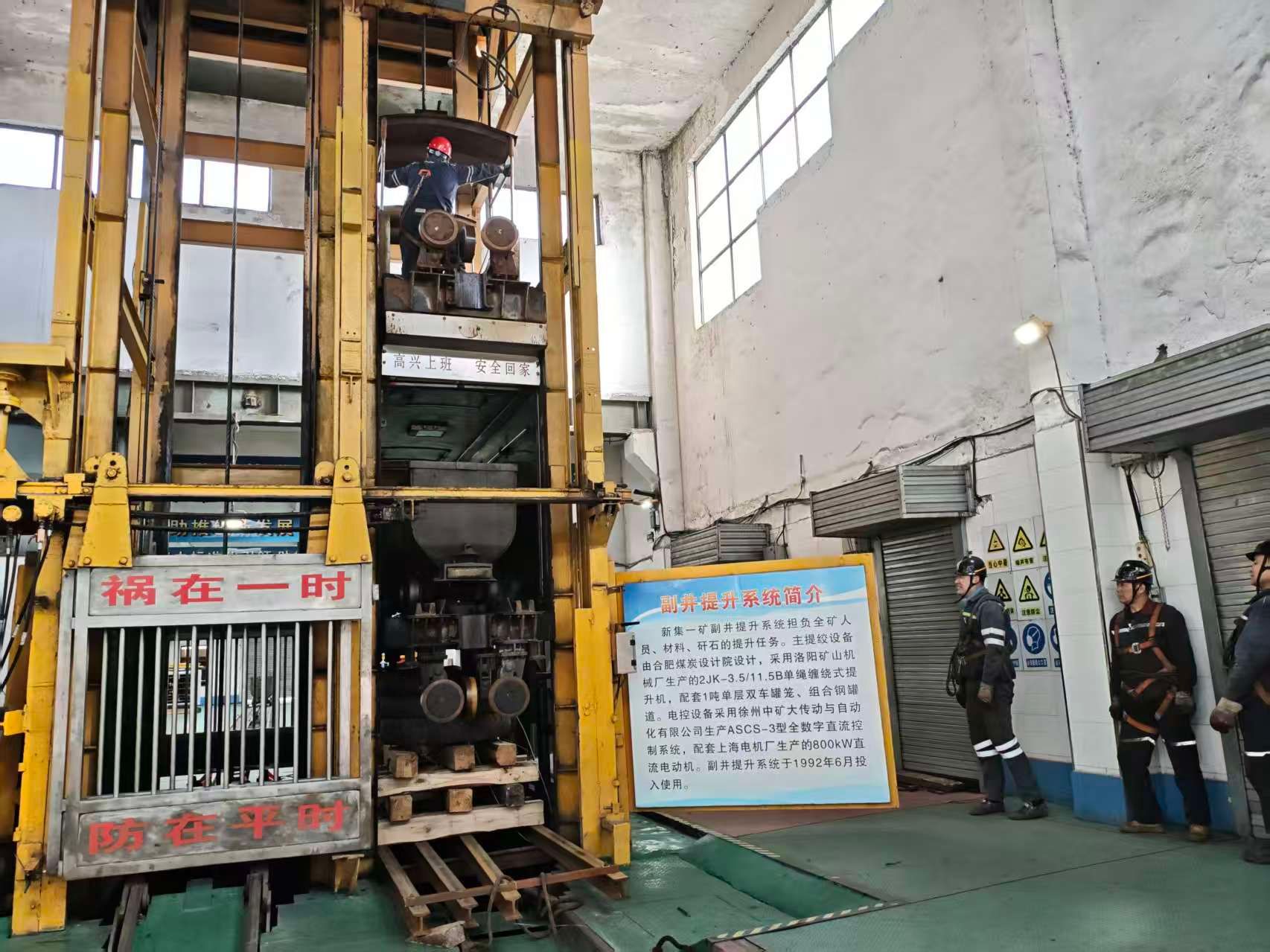 为确保矿井提升系统安全可靠,1月10日上午,新集一矿固定队圆满完成副井罐笼防坠器不脱钩和脱钩试验。