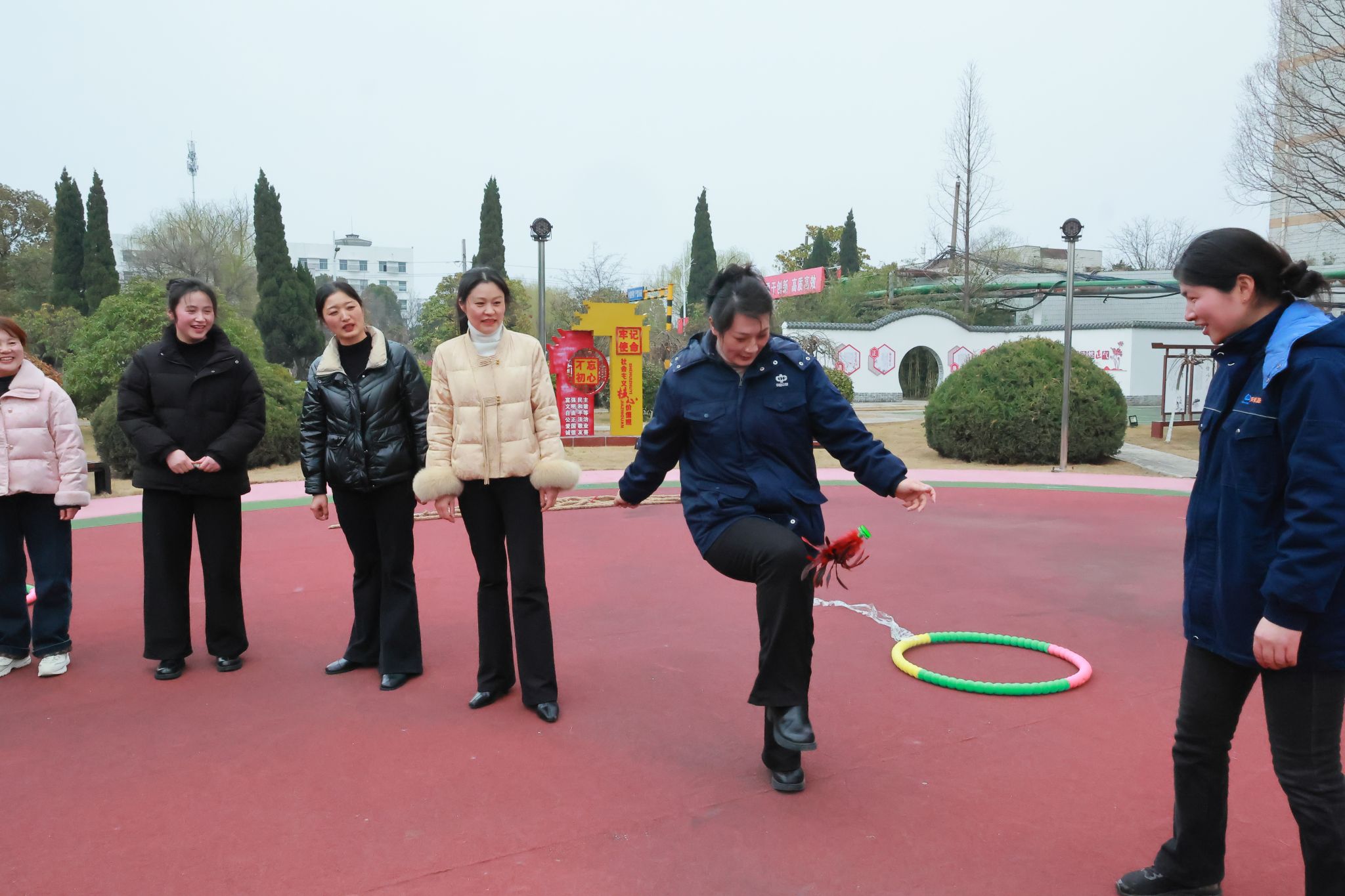 本次活动集系列性、协作性与娱乐性于一体,设置踢毽子、套圈、拔河等多个项目。活动现场气氛热烈,欢声笑语不断。踢毽子比赛中,一只彩色毽子便在空中轻盈翻飞。选手们精神抖擞、身姿矫健,体现朝气蓬勃的精神风貌;套圈环节里,大家凝神瞄准、默契配合,在轻松愉悦中收获惊喜与快乐;拔河比赛将活动推向高潮,队员们心往一处想、劲往一处使,团结协作、奋力拼搏,充分彰显凝心聚力、奋勇争先的团队精神。