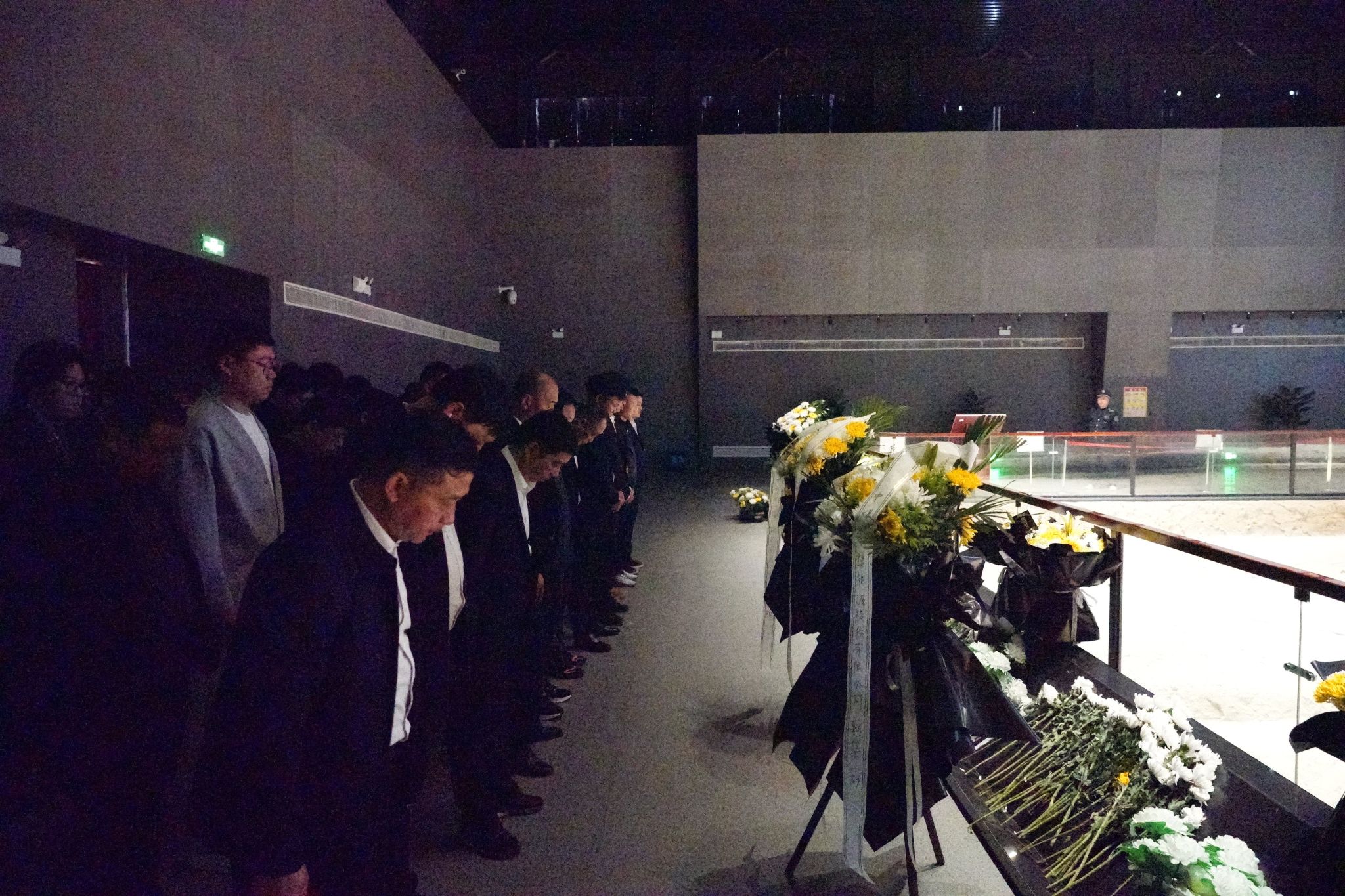 苍松翠柏掩映下的教育馆格外庄严肃穆。上午10时许,祭扫仪式正式开始。全体人员在讲解员的引导和讲解下,怀着沉痛的心情依次参观了矿工作业场景、日寇残害矿工刑具以及“白骨大坑”等展区。了解了日军侵占淮南煤矿后,为了掠夺煤炭资源,推行“以人换煤”的法西斯政策,致使13000多名矿工惨遭迫害致死的史实。锈迹斑斑的镐头、褴褛的衣衫、狭小的“大病房”模拟场景,特别是坑道内堆积如山的森森白骨,无声地诉说着那段惨绝人寰的历史。看着眼前触目惊心的场景,大家眼眶湿润,内心受到了极大的震撼。大家在“白骨大坑”前向惨遭迫害的死难矿工敬献花篮,集体默哀,表达对罹难者的无限哀思和对历史的沉痛敬畏。