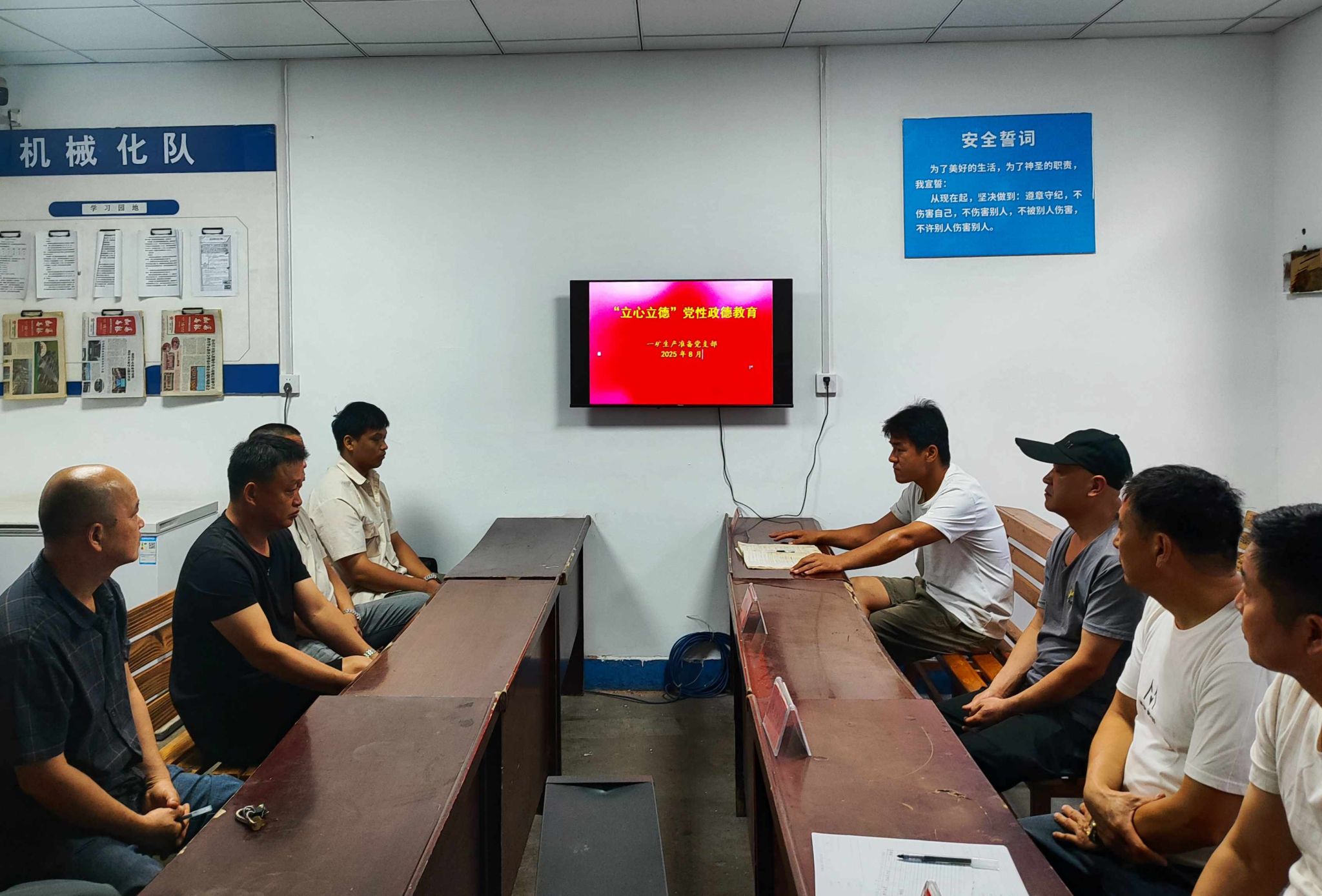 在随后的交流讨论环节,党员们结合自身工作实际,踊跃发言。有的党员表示,在日常工作中,要时刻以党性为指引,立足岗位,积极发挥先锋模范作用,为矿井安全生产贡献力量;有的党员提到,要坚守人民立场,关心职工群众的需求,积极为他们解决实际问题,践行党的根本宗旨。大家纷纷表示,将以此次主题党日活动为契机,在今后的工作和生活中,不断加强党性政德修养,做到心有所畏、言有所戒、行有所止,以更加饱满的热情和更加扎实的作风,投入到各项工作中去,为矿井高质量发展贡献力量。