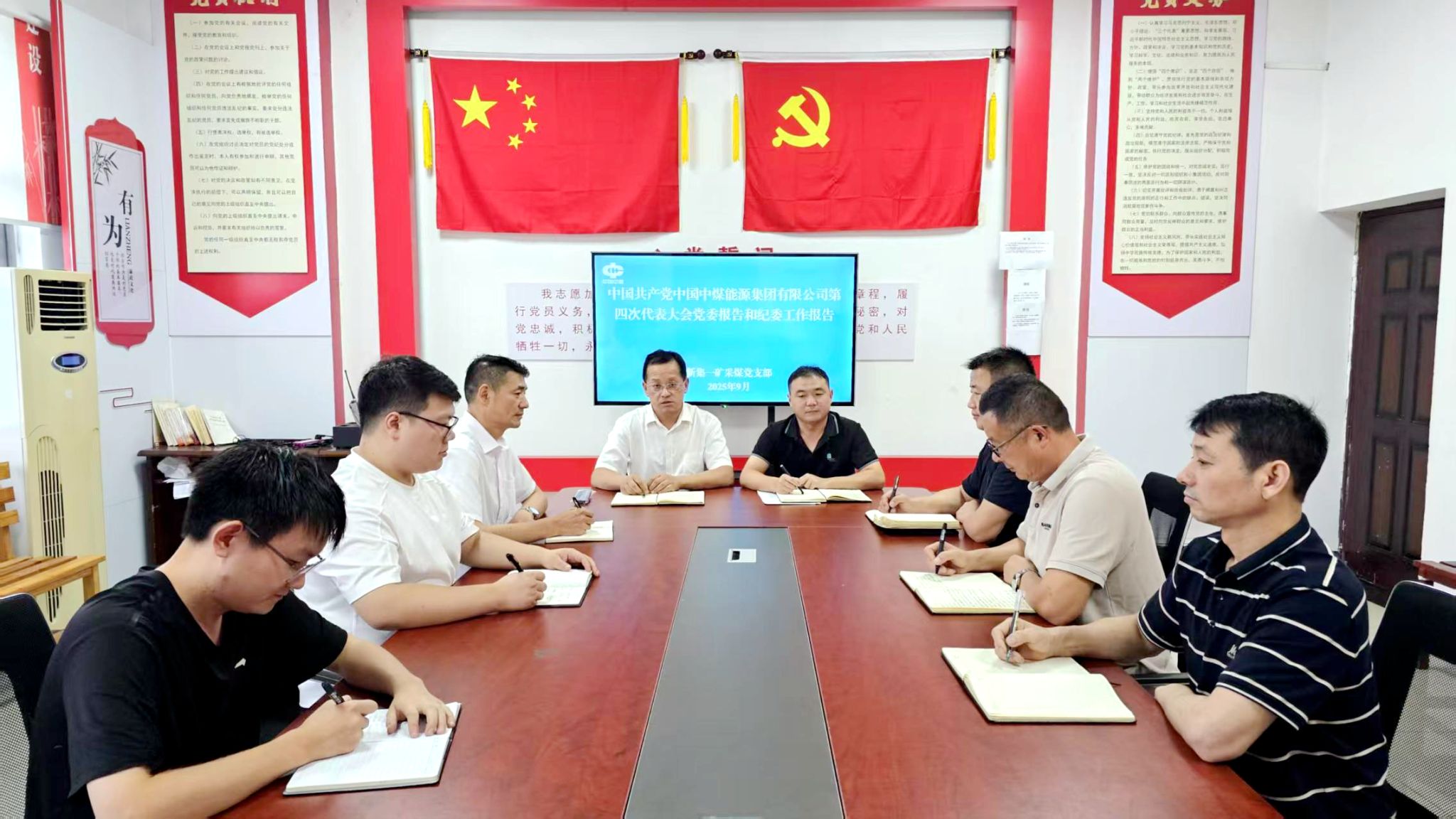 9月15日,新集一矿采煤党支部组织支部党员干部召开专题学习会,认真传达学习集团公司第四次党员代表大会党委报告和纪委工作报告。