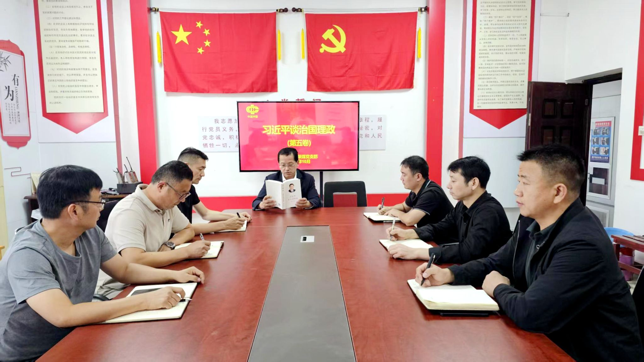 为深入学习贯彻党的创新理论,推动习近平新时代中国特色社会主义思想在基层落地生根,10月2日,新集一矿采煤党支部组织全体党员开展《习近平谈治国理政》第五卷集中学习,进一步筑牢思想根基,凝聚奋进力量。