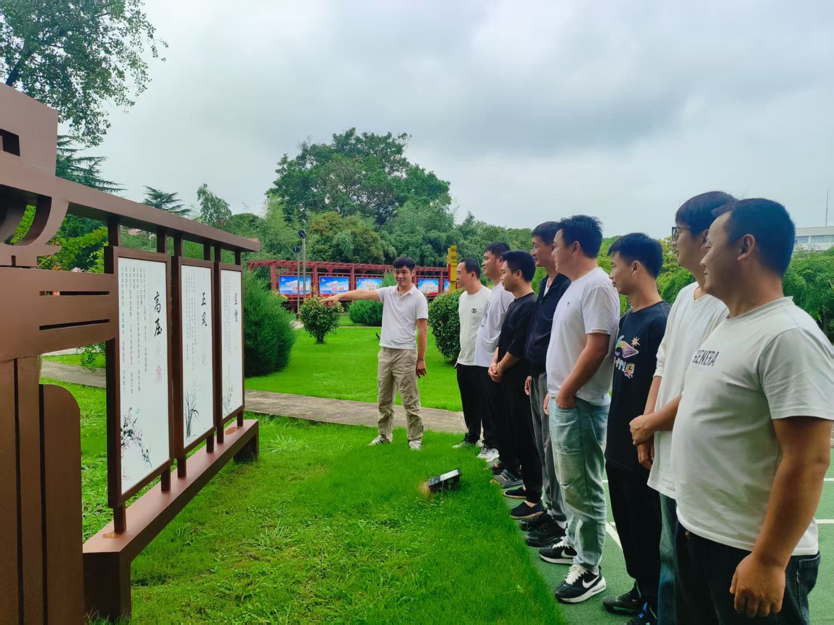 在人力资源科人员的带领下,新员工们先后参观了正气路、清风苑等景点。明朝杨继宗“不私一钱”、晋代陶侃“陶母退鱼”、宋代刘温臾“厚谢婉拒”的故事以及元代王冕《墨梅》“我家洗砚池边树,朵朵花开淡墨痕。不要人夸颜色好,只留清气满乾坤。”明代于谦《入京》“绢帕蘑菇与线香,本资民用反为殃;清风两袖朝天去,免得闾阎话短长。”清代郑板桥《竹石》“咬定青山不放松,立根原在破岩中。千磨万击还坚劲,任尔东西南北风。”宋代文学家文天祥《正气歌》“天地有正气,杂然赋流形。下则为河岳,上则为日星……”等与廉洁有关的成语典故和诗句,充分展示了古代廉吏防微杜渐、拒腐防变的清廉本色和高尚情操,为后世树立了榜样,让大家深受教育。