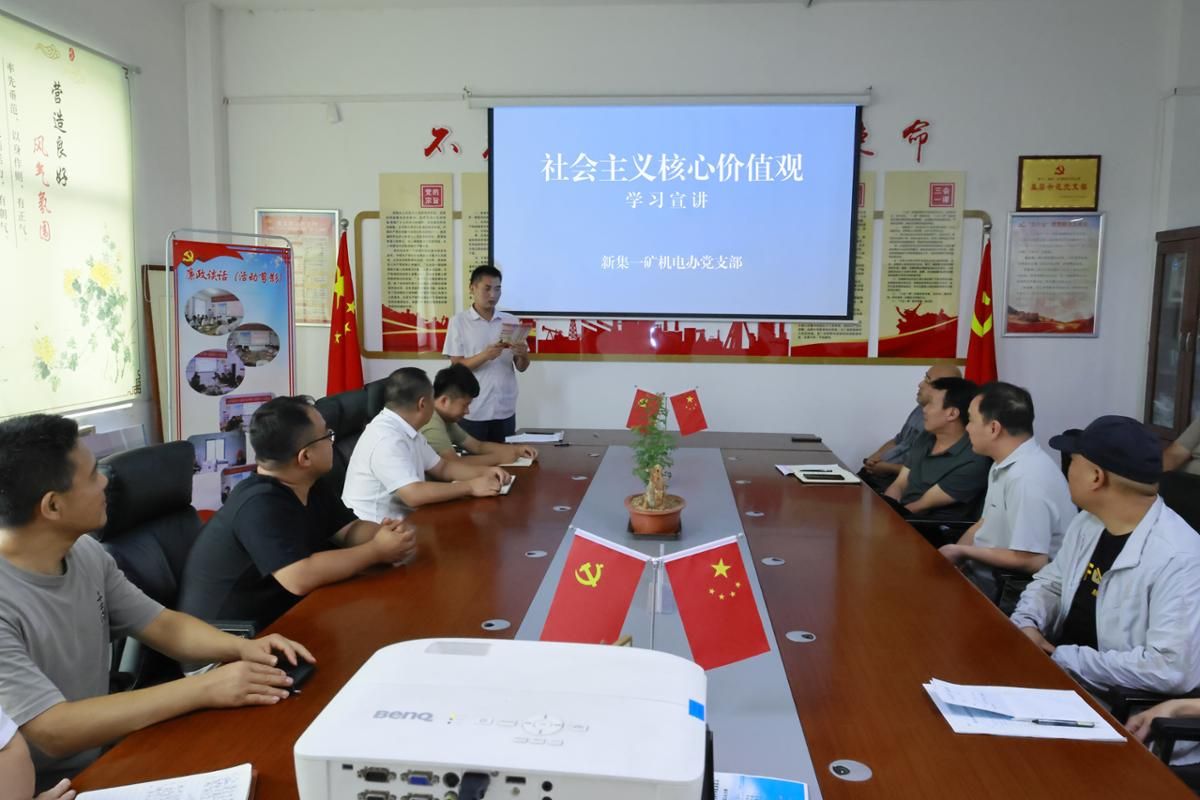 10月2日上午,新集一矿机电办党支部开展社会主义核心价值观宣讲活动,积极培育和践行社会主义核心价值观,凝聚思想共识,激发工作干劲。