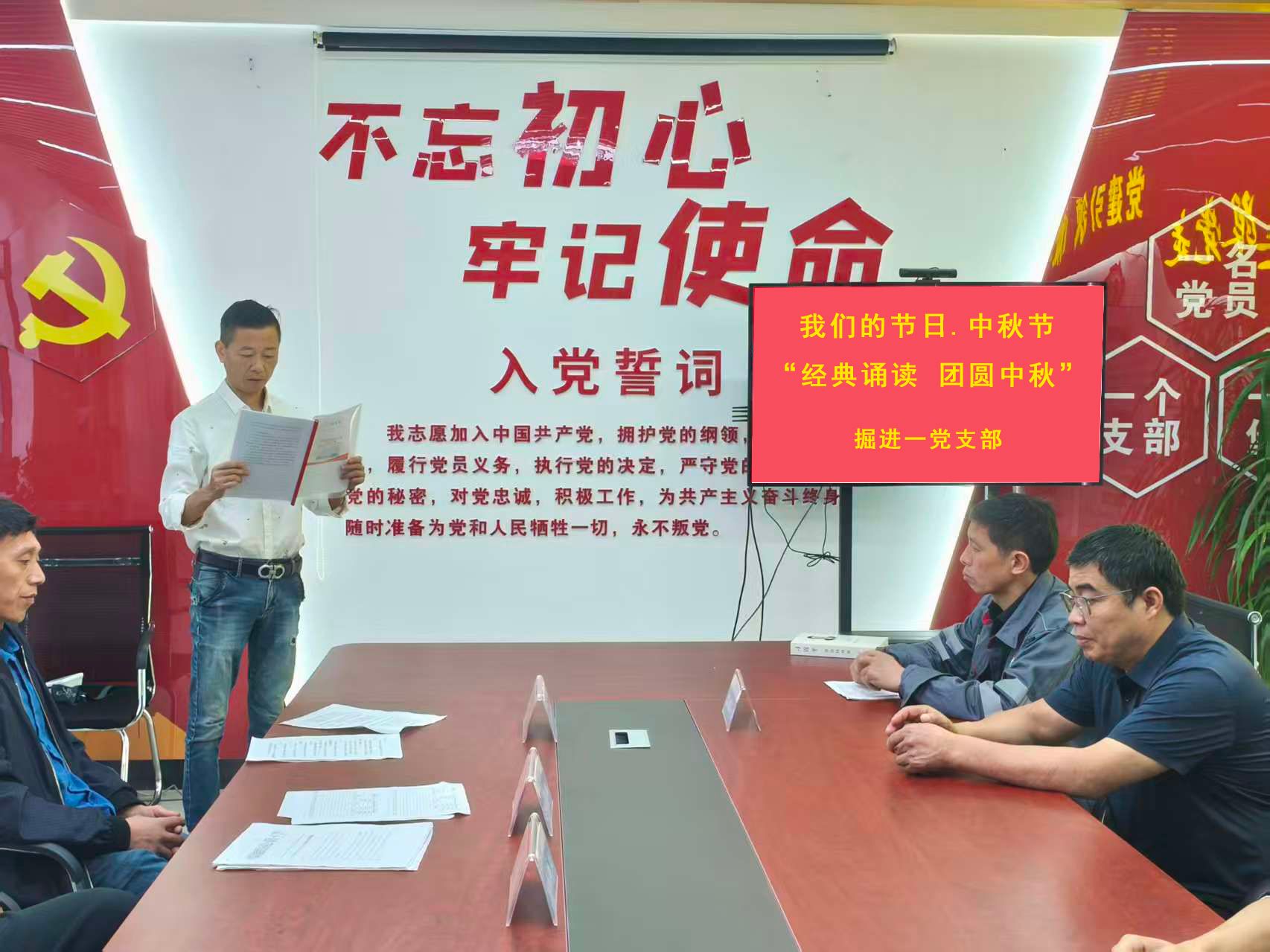 又是一年团圆时,自古中秋月最明。在2025年“中秋”来临之际,为欢度国庆、祝福祖国、丰富职工的精神文化生活,积极培育和践行社会主义核心价值观,营造浓厚节日氛围。10月6日,新集一矿掘进一党支部开展“我们的节日·中秋”经典诵读活动,用经典的诗歌迎接中秋佳节的到来。