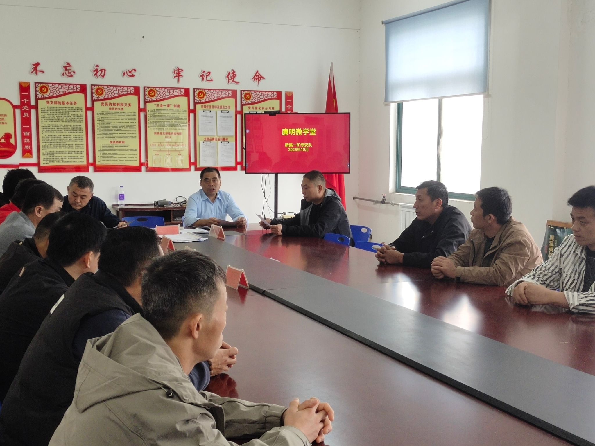 为持续推动廉洁文化向基层延伸,努力将廉洁理念深植一线班组。10月18日,新集一矿综安队利用班前会,持续开展“廉明微学堂”活动。用“小课堂”传递“大道理”,用“身边事”教育“身边人”,让廉洁意识入脑入心。