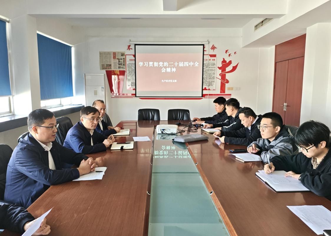 为深入学习贯彻党的二十届四中全会精神,切实把党员的思想和行动统一到全会精神上来,11月13日,生产技术党支部组织党员干部传达学习党的二十届四中全会精神。