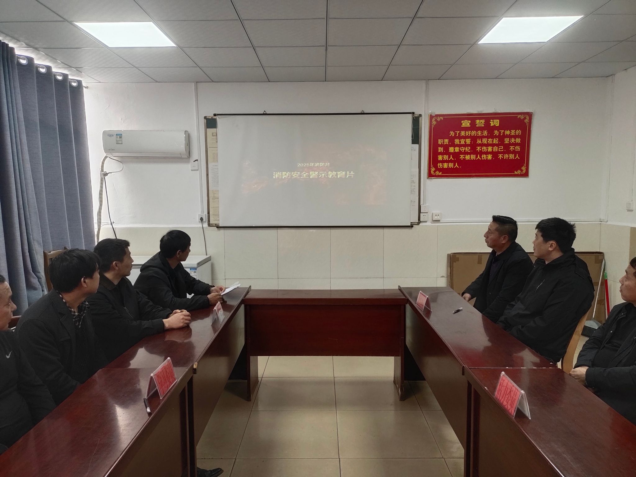 活动中,该队管理人员首先带领干部职工集中学习了习近平总书记关于应急管理的重要论述和消防工作重要指示批示精神,号召大家深刻领会核心要义、精神实质,努力把学习成果转化为推动消防工作的强大动力。随后,围绕“全民消防、生命至上——安全用火用电”主题,针对秋冬季节特点,讲授安全用电、燃气安全、消防通道、安全生活等方面防火用电安全常识,让广大职工切实“识风险、懂预防”,提高应知应会能力。最后,干部职工们集中观看了2025年消防宣传月警示教育片,教育广大职工以案为鉴,强化落实消防安全责任。