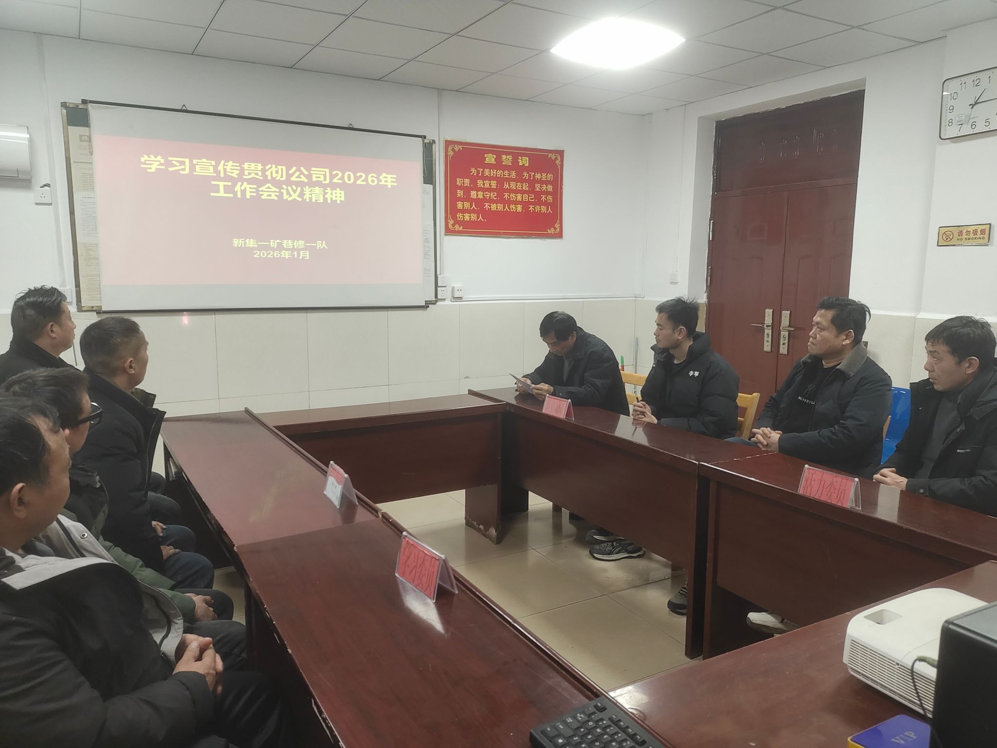公司2026年工作会议胜利召开后,1月18日,新集一矿巷修一队利用班前会时间开展会议精神学习宣传贯彻活动,确保把全体干部职工思想和行动统一到会议精神上来,为完成年度任务指标凝聚奋进力量。