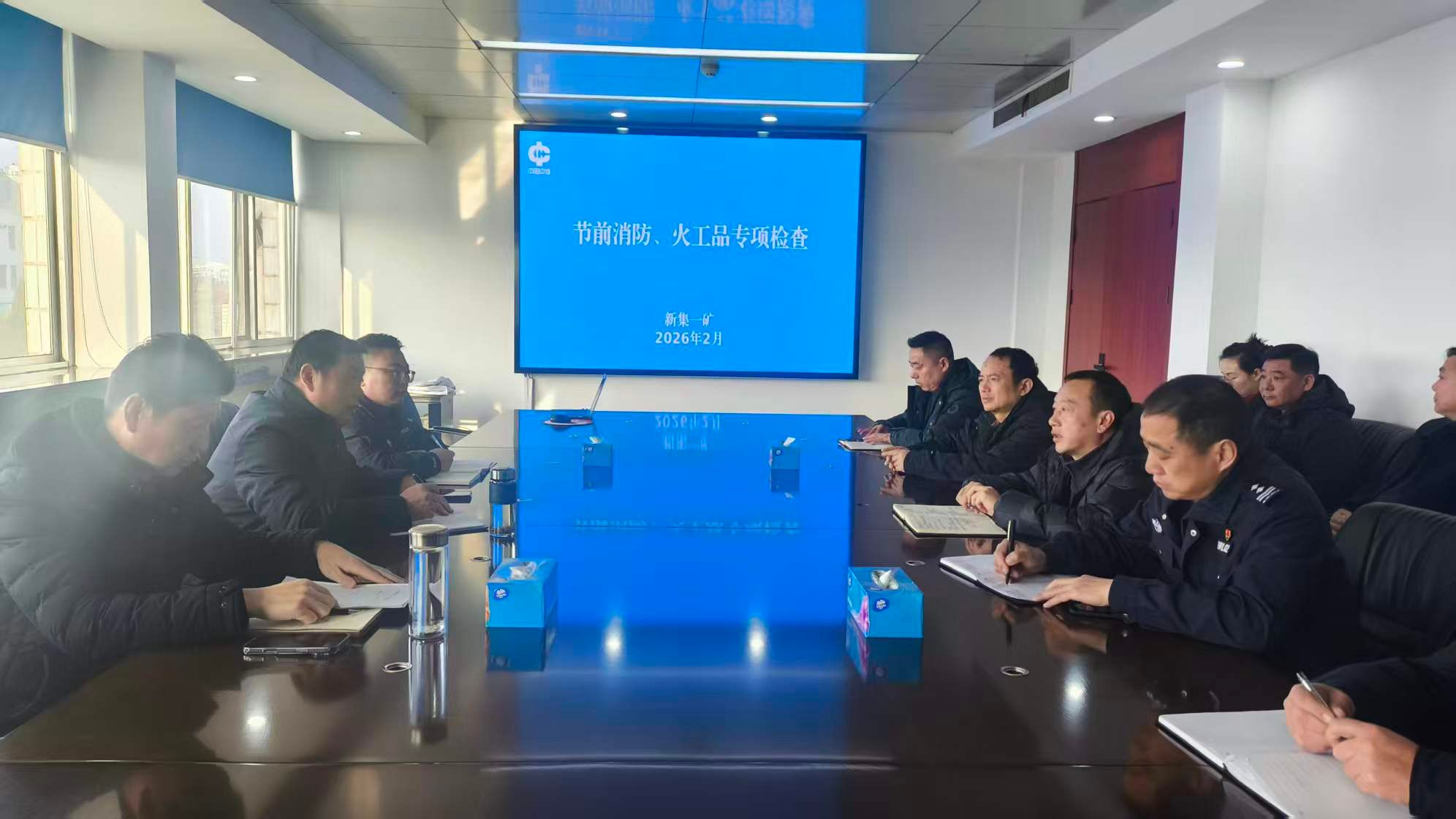 在行管楼三楼会议室,检查组首先听取了新集一矿在火工品管理、使用等方面情况汇报。随后,仔细查阅了火工品管理组织机构文件、管理制度制定及修订情况、业务培训记录、思想谈话记录、民用爆炸物品运输、接收、入库、发放、退库、库存管理原始资料、火工品流向登记台账等资料,并现场查看了火工品装卸全流程视频记录、视频监控储存时间是否达标等。