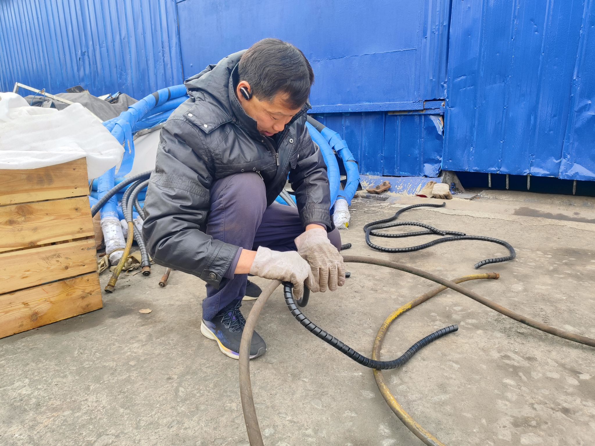该材料员一边拆解检修,一边向身边同事讲解:“高压管拆下来后,先用油润滑养护,外部套上保护管,检验合格后可再次投入使用,既保障安全运行,又能节省材料成本。”