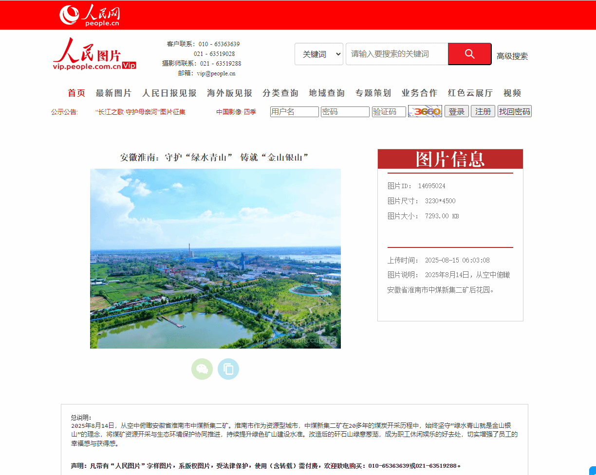 上传图片为空中俯瞰安徽省淮南市中煤新集二矿。淮南市作为资源型城市,中煤新集二矿在20多年的煤炭开采历程中,始终坚守“绿水青山就是金山银山”的理念,将煤矿资源开采与生态环境保护协同推进,持续提升绿色矿山建设水准。改造后的矸石山绿意葱茏,成为职工休闲娱乐的好去处,切实增强了员工的幸福感与获得感。