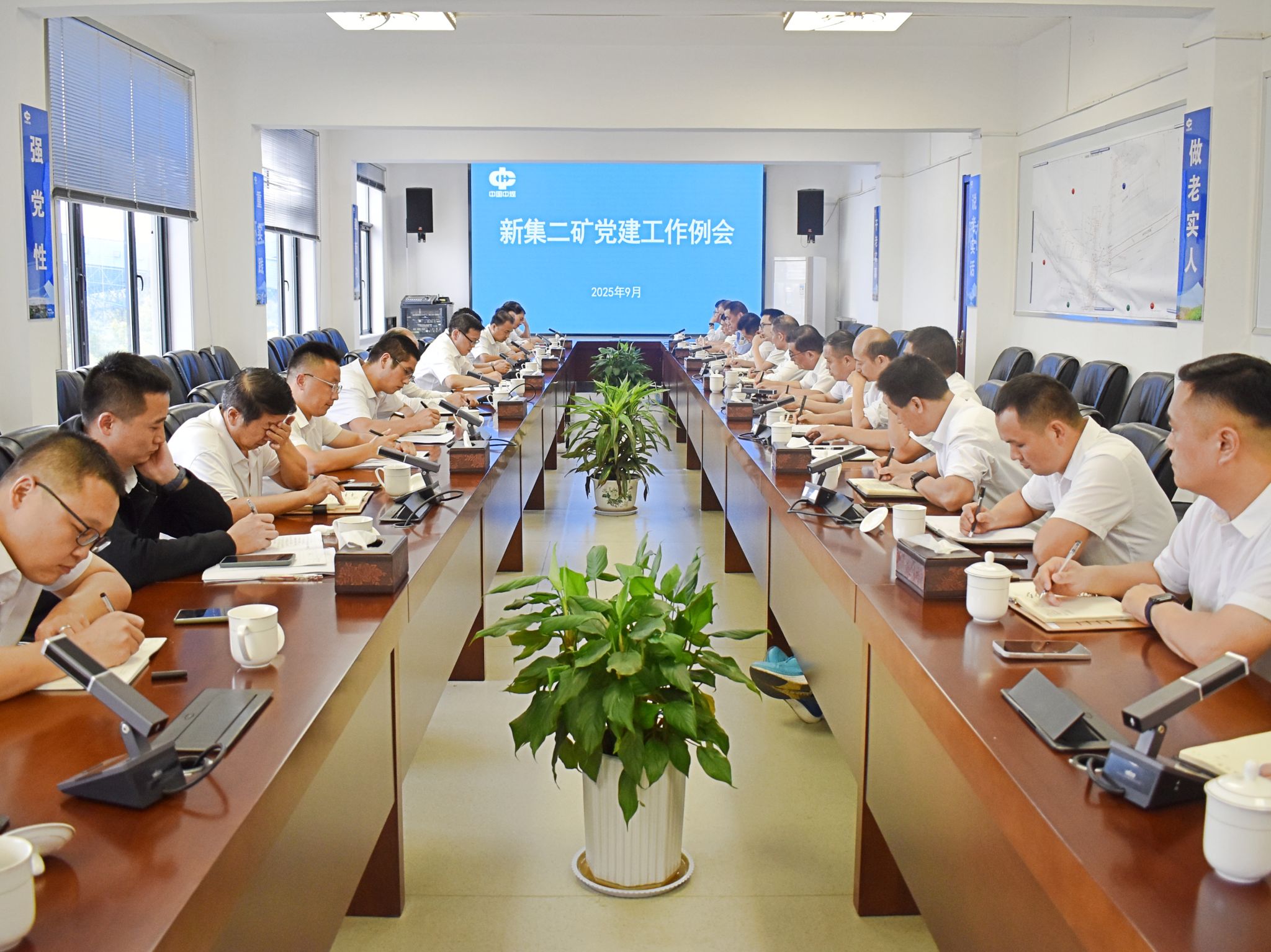 9月28日,新集二矿党委召开党建工作例会,矿党委书记、副矿长黄德圣主持会议,基层党支部书记、职能科室负责人及驻矿单位等人员参加。
