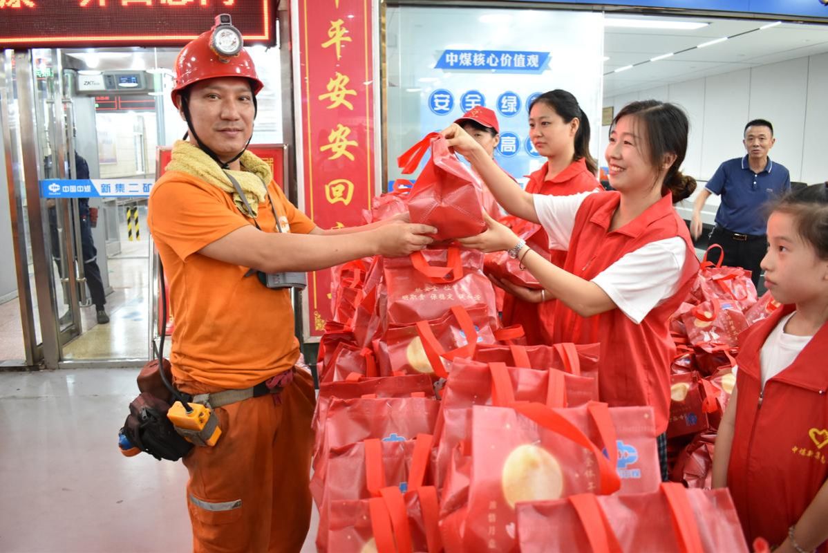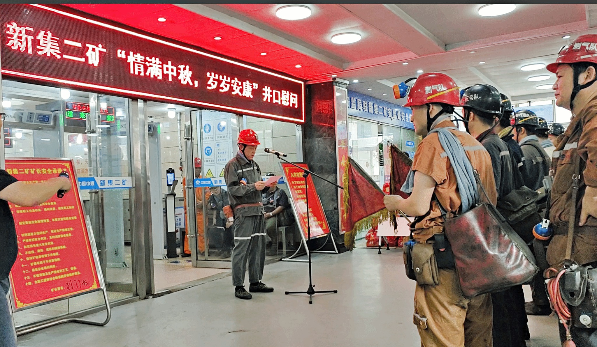 “师傅,中秋节快乐!辛苦了!”中秋佳节当天,新集二矿工会组织的“情满中秋 岁岁安康”慰问活动在矿井口温情启幕。矿党委书记、副矿长黄德圣参加并致词,将装着月饼、水果的慰问品递到每一位即将下井的矿工手中,同时送上诚挚的节日祝福。让坚守岗位的“煤海卫士”在初秋的微凉中,感受到家一般的温暖。