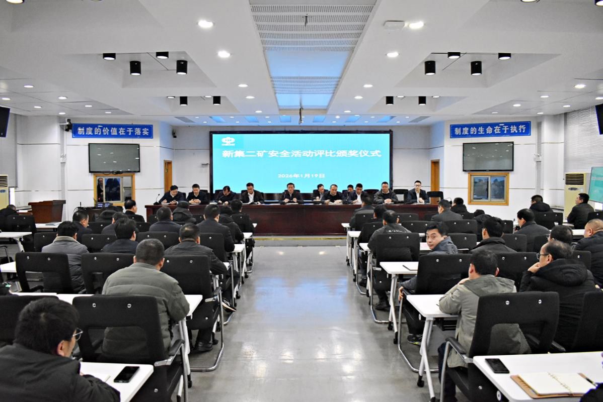 1月19日,新集二矿组织召开安全活动评比表彰会,矿党委书记黄德圣,矿副总以上领导、正副主管级管理人员、基层管技人员及受表彰先进代表参加。