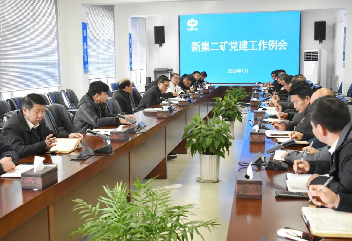 1月23日,新集二矿党委召开党建工作例会,矿党委书记、副矿长黄德圣主持会议,基层党支部书记、职能科室负责人及驻矿单位、党建工作科、纪委办公室相关人员参加。