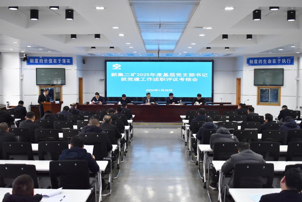 1月28日,新集二矿组织召开2025年度基层党支部书记抓党建工作述职评议考核会。党委书记、副矿长黄德圣主持会议,党委副书记、矿长孙茂如等领导班子成员,基层党支部书记、党员职工代表等参加会议。