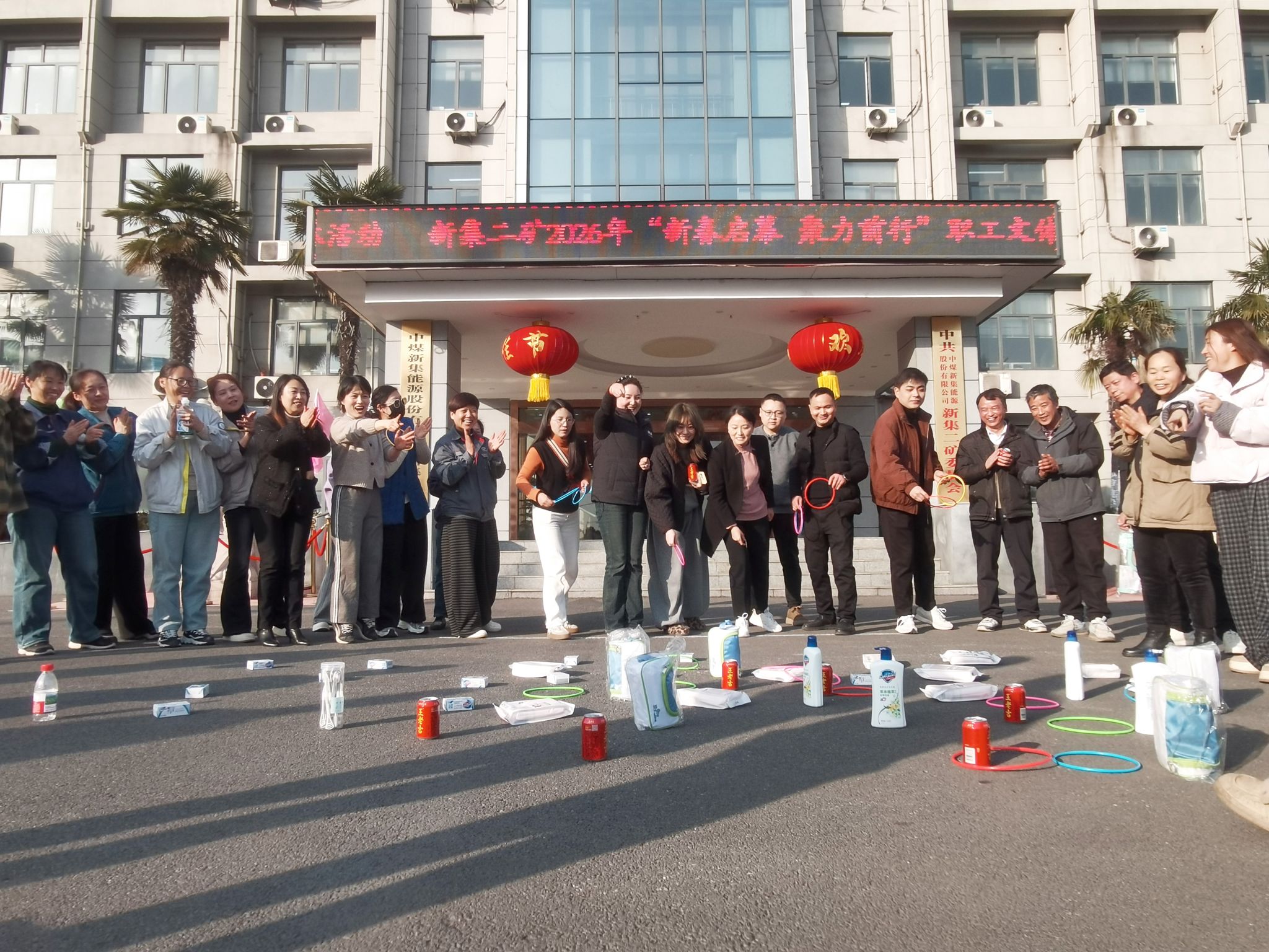 金鞍耀马岁,欢歌满矿山。为喜迎2026年新春佳节,丰富职工精神文化生活,2月13日,新集二矿工会开展迎新春职工拔河、踢毽子、送春联及套圈趣味文体活动,现场暖意融融,让职工都能尽情享受运动乐趣,展现矿山职工的活力风采。