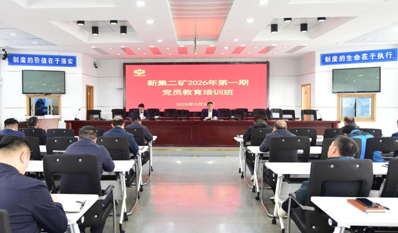 为深入学习贯彻习近平新时代中国特色社会主义思想和党的二十届四中全会精神,加强党员队伍思想政治建设,锤炼党员党性修养。3月26日,新集二矿2026年第一期党员教育培训班在行管楼西三楼会议室开班,矿党委书记黄德圣、基层党支部书记、全体参培党员参加。