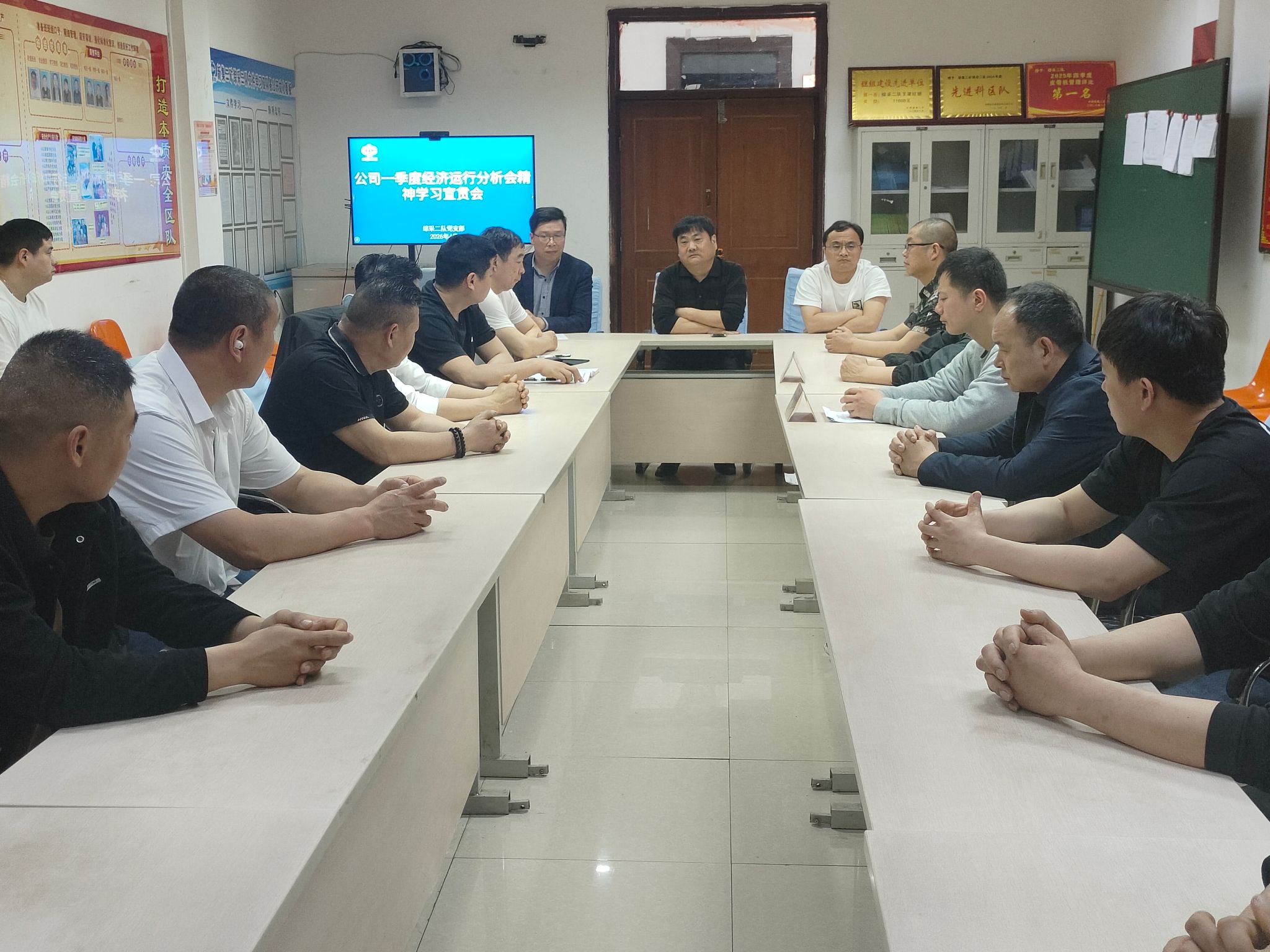 4月19日,新集二矿生产副矿长王思锋深入综采二队班前会,宣传贯彻公司2026年一季度经济运行分析会精神,进一步统一思想认识、凝聚攻坚合力,动员全体职工以更加务实的工作作风投身二季度各项工作。