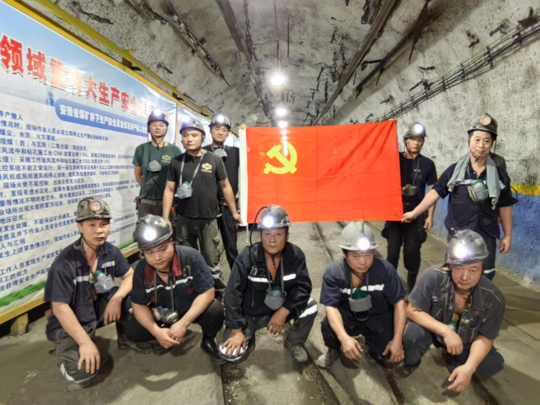 活动现场,党员们身着工装、携带专用工具,精神抖擞地进入井下作业区。面对鲜艳党旗,大家高举右拳重温入党誓词,铿锵誓言在巷道中回荡,进一步坚定了立足岗位、攻坚克难的决心。