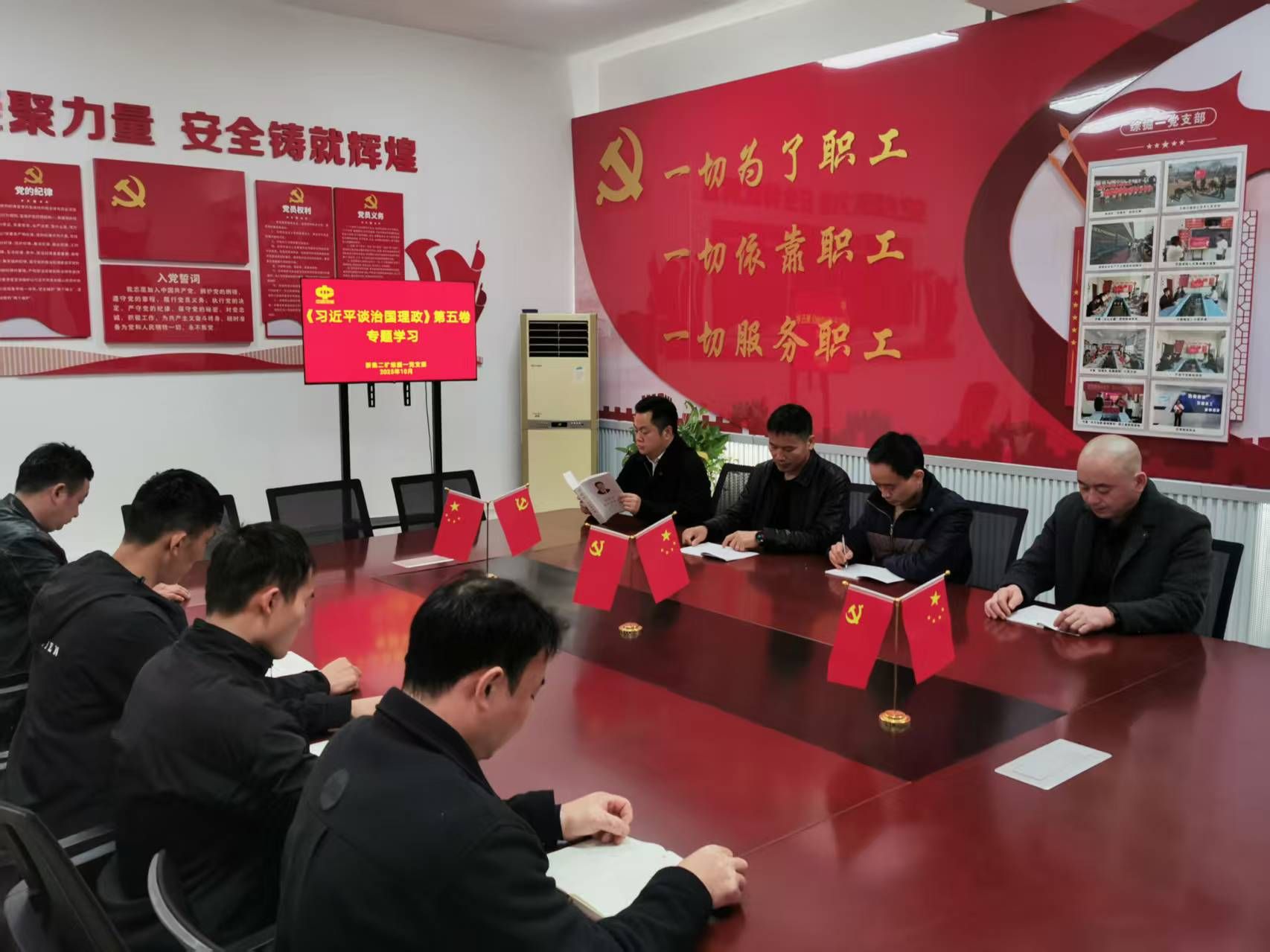 《习近平谈治国理政》第五卷出版发行是党和国家政治生活中的大事,党支部结合综掘队工作实际,明确学习要求,一是深学实悟强担当。将第五卷学习作为当前重要政治任务抓实抓细,通过学思践悟提升党员政治站位与理论素养,推动学习成果转化为行动自觉,在掘进作业、设备检修中发挥党员先锋模范作用,带头破解断层处理、支护优化等生产难题。二是立足岗位促发展。坚持学思用贯通、知信行统一,围绕综掘队核心工作,在保障掘进进度、严控工程质量、落实安全规程上攻坚克难,以“学理论、强作风、践使命”的自觉,增强队伍凝聚力与战斗力。三是严管厚爱树新风。要求党员在井下作业、班组管理中知敬畏、守底线,杜绝违章指挥与违规作业,营造干事创业良好氛围,以过硬作风永葆党的先进性纯洁性,为职工树立榜样。