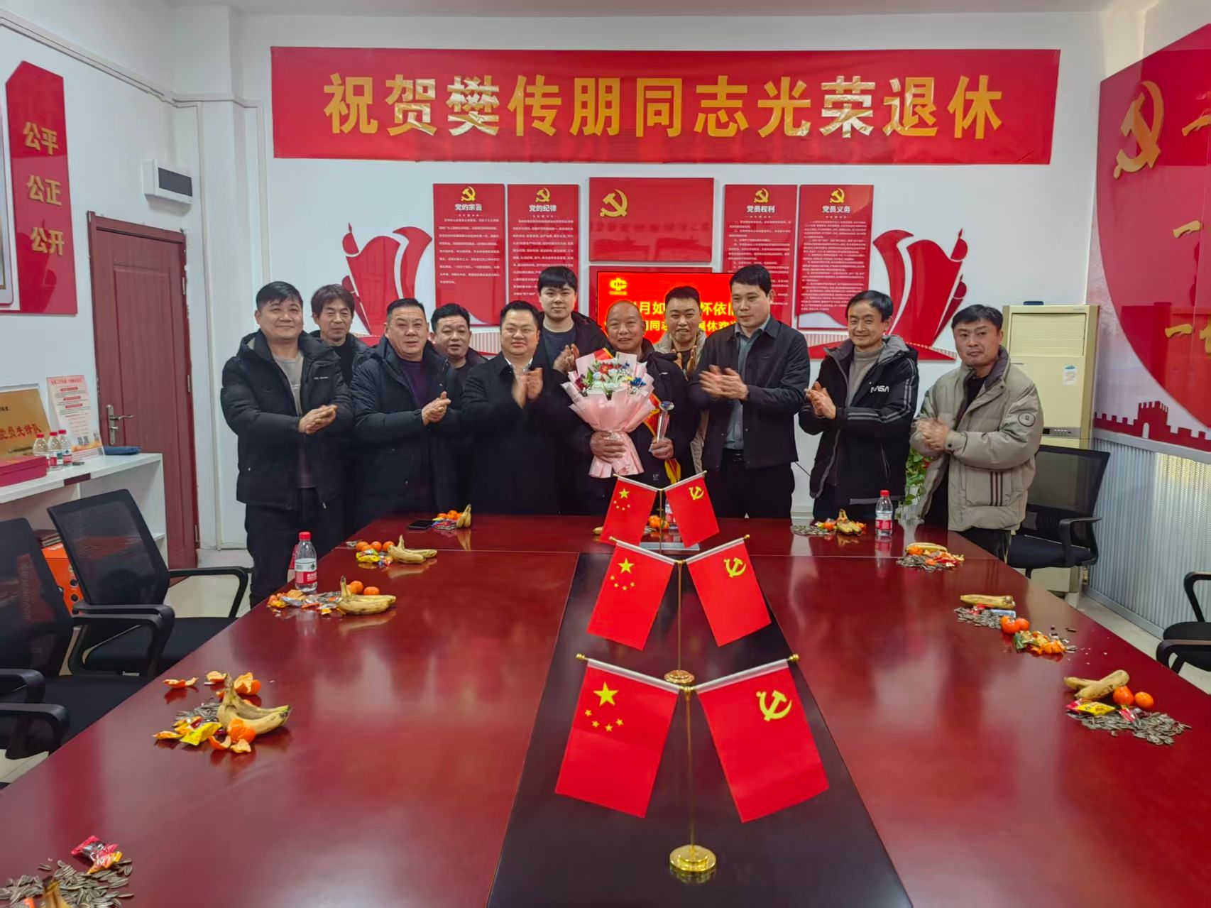2月26日,新集二矿综掘一队在党员活动室举办“岁月如歌 情怀依旧”退休职工欢送会,温情欢送樊传朋同志光荣退休。